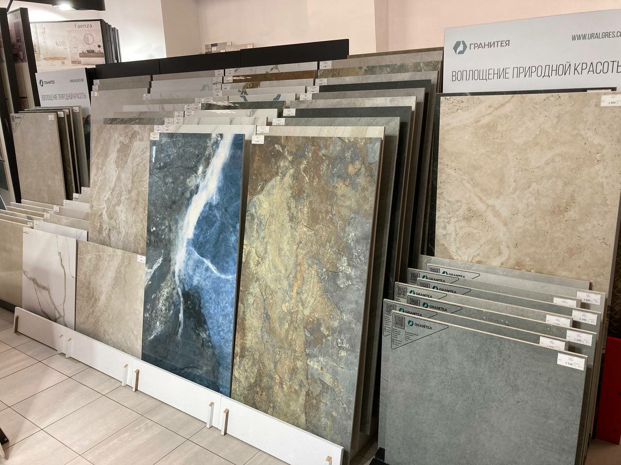 - Большой выбор образцов плитки и керамогранита