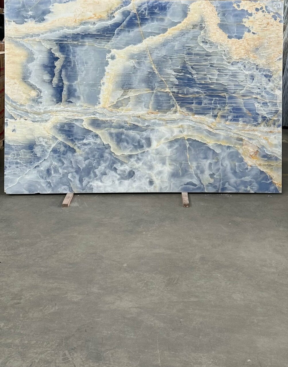 Природный оникс с Ирана в слэбах. Хорошо просвечиваемый, показывающий всю глубину синего и голубого цвета.Размер 2920 х 2000 х 20 мм
