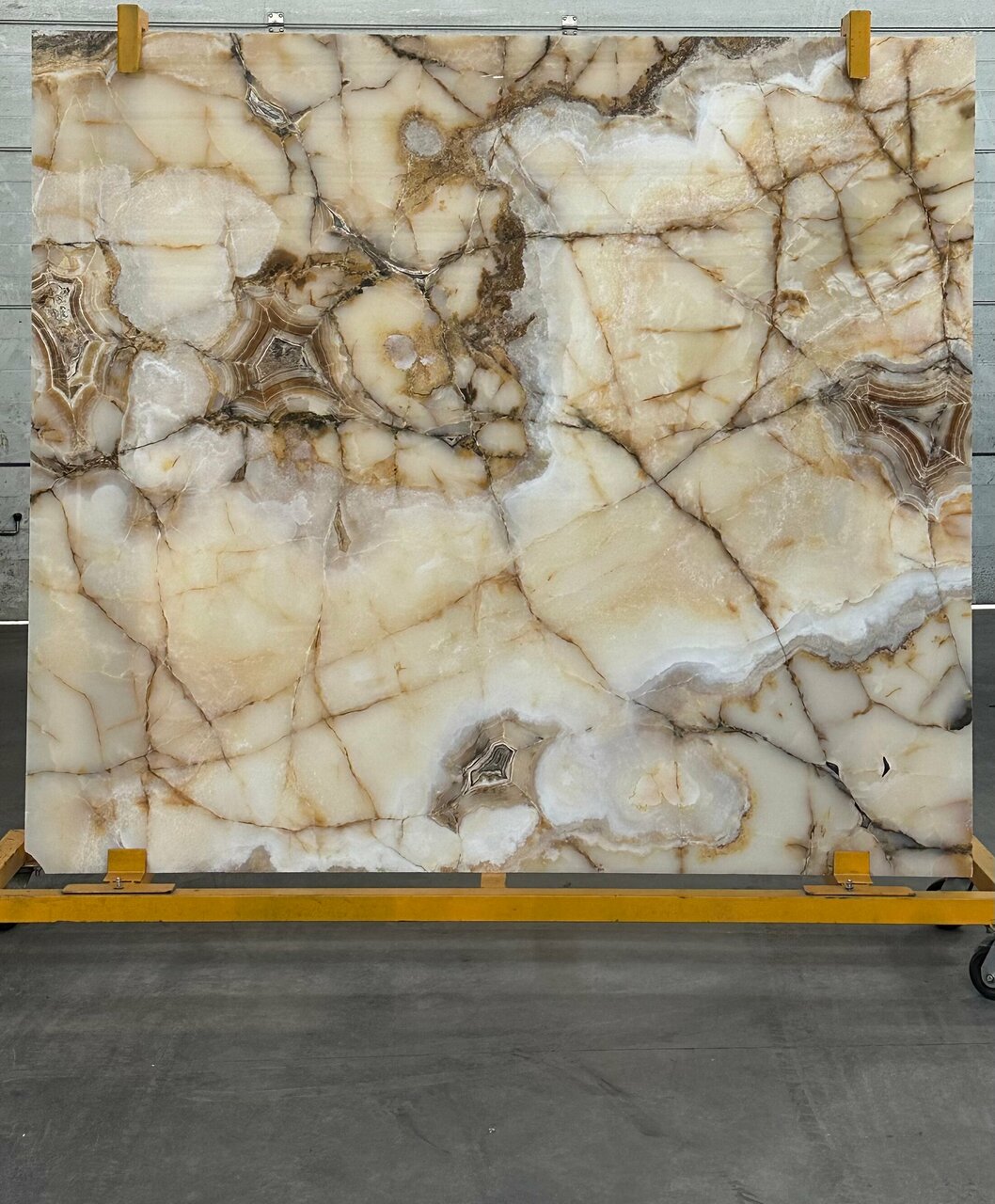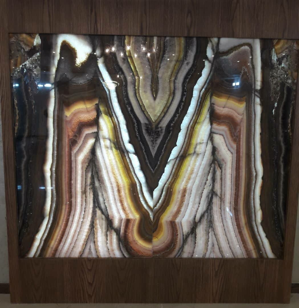 Превосходный натуральный оникс с объемным эффектом при включенной подсветке.Размер 2250 х 1900 х 20 мм