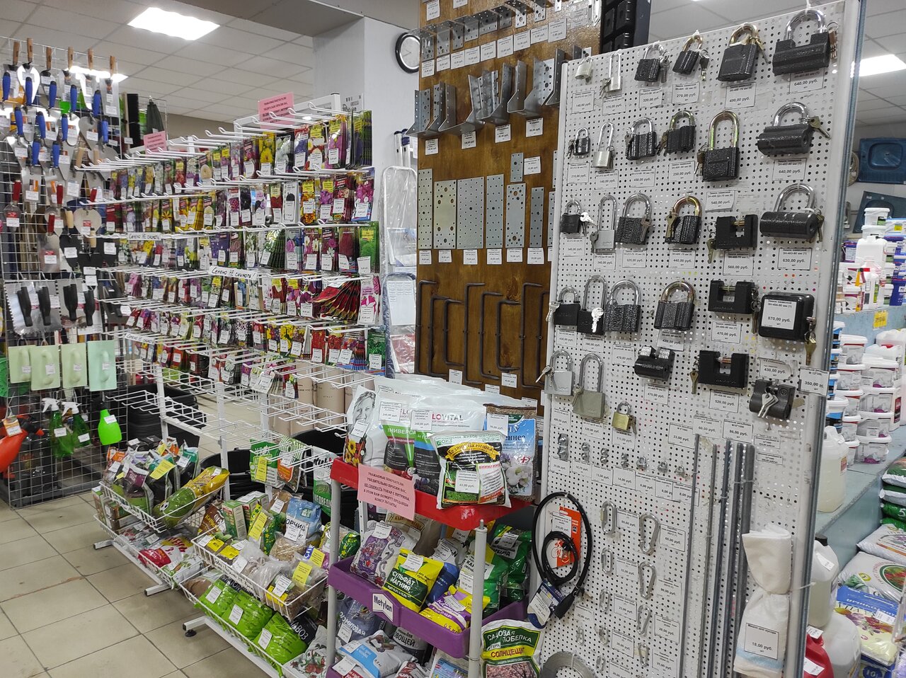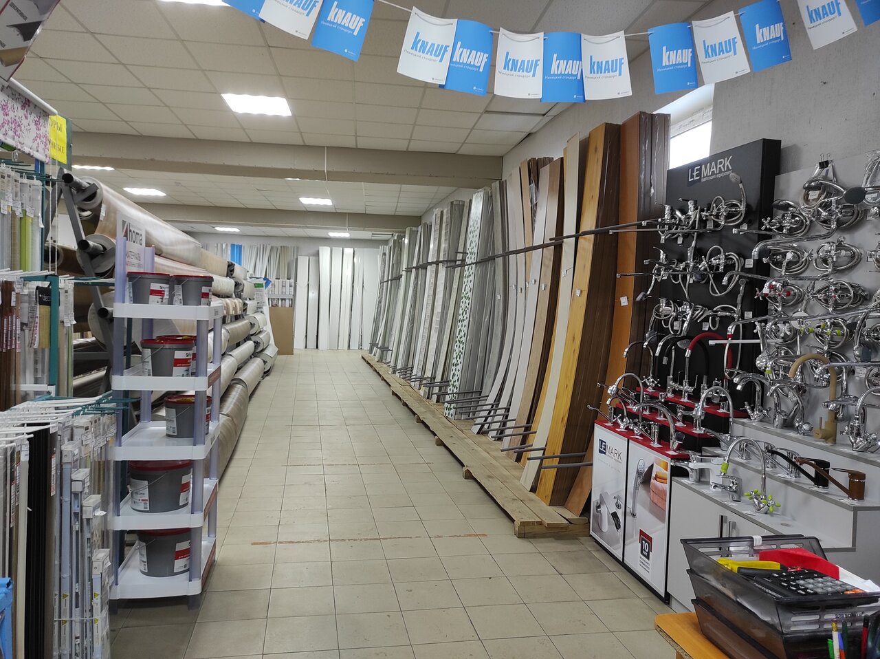 В целом на базе можно все преобрести, от цемента до кровли. Есть и электрика, лакокрасочная продукция, метизы, сантехника, обои, ленолиум, двери, плитка, даже семяна и все для садоводов! Цены достойные..