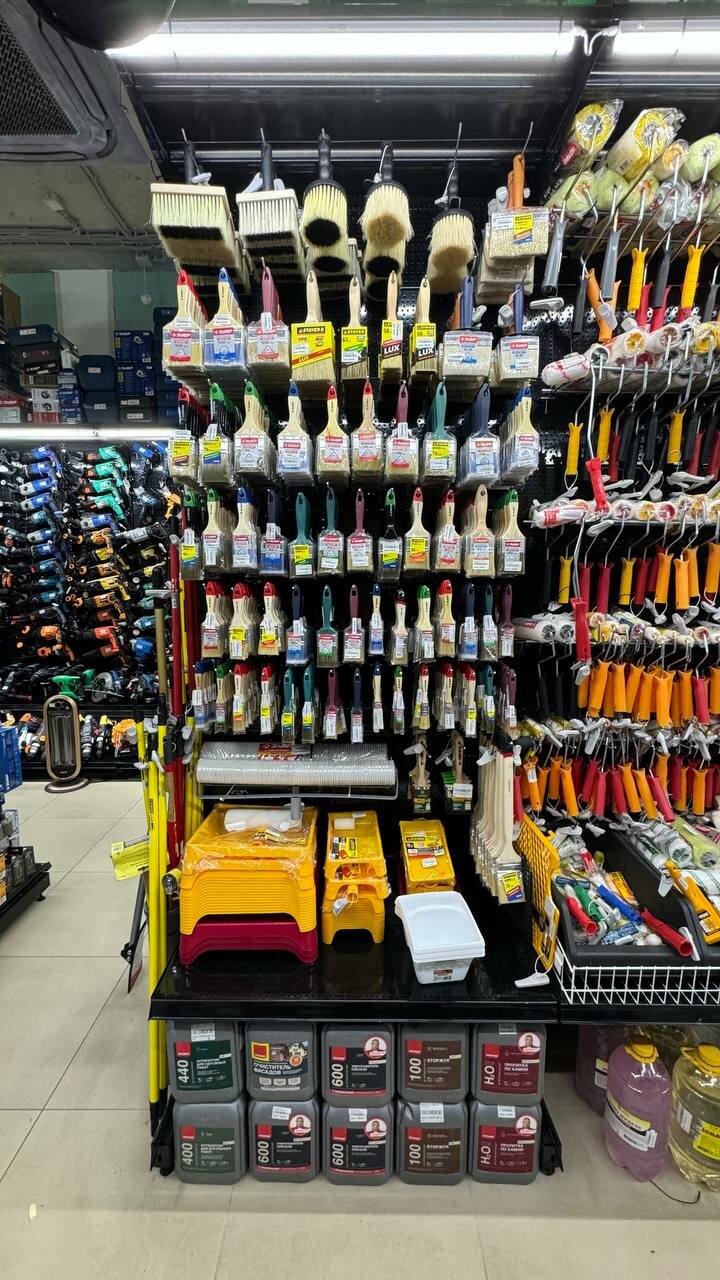 Удобно что в этих магазинах можно купить почти всё! Огромный ассортимент строительных принадлежности, инструментов и т.д. Всевозможные краски, лаки.. Удобно ещё то, что есть система накоплений баллов по номеру телефона))) Рекомендую!