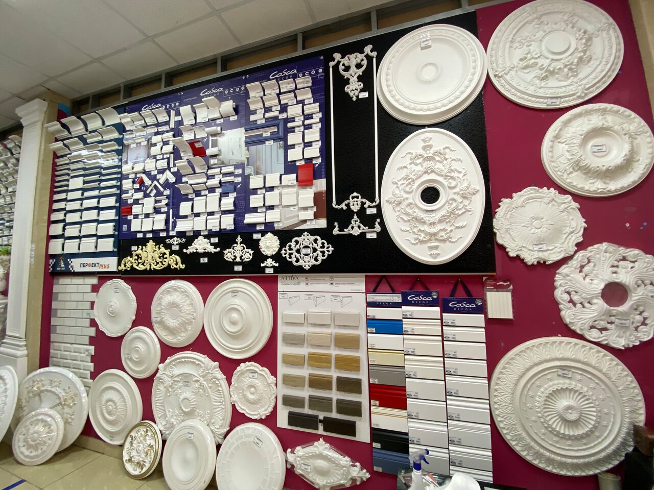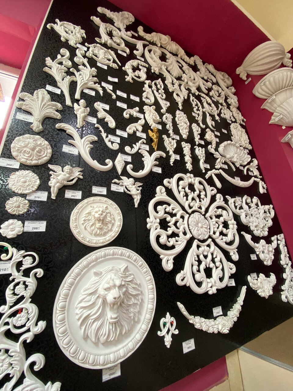 Люблю все натуральное, поэтому квартиру отделывала декором из гипса. Магазин не плохой. Выбор изделий большой. Девочки помогают подобрать. Есть в наличии много не больших деталей. Декор на потолок и углы купила сразу, а карнизы и рамки пришлось заказывать.