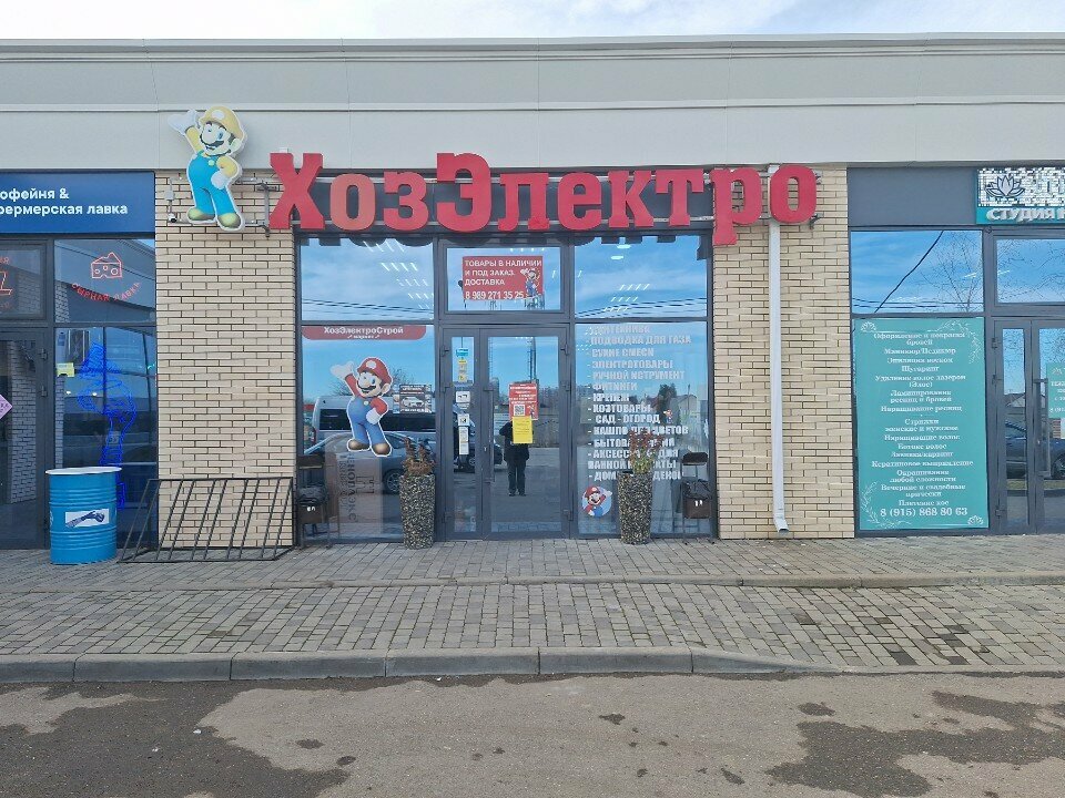 ХозЭлектроСтрой — строительный магазин в Краснодаре, расположенный по адресу: ул. Оливковая, 1, стр. 1. Ассортимент включает строительные материалы, инструменты и товары для ремонта. Режим работы: пн–пт 08:00–20:00, сб–вс 09:00–18:00. Контактный телефон: +7 (989) 271-35-25.