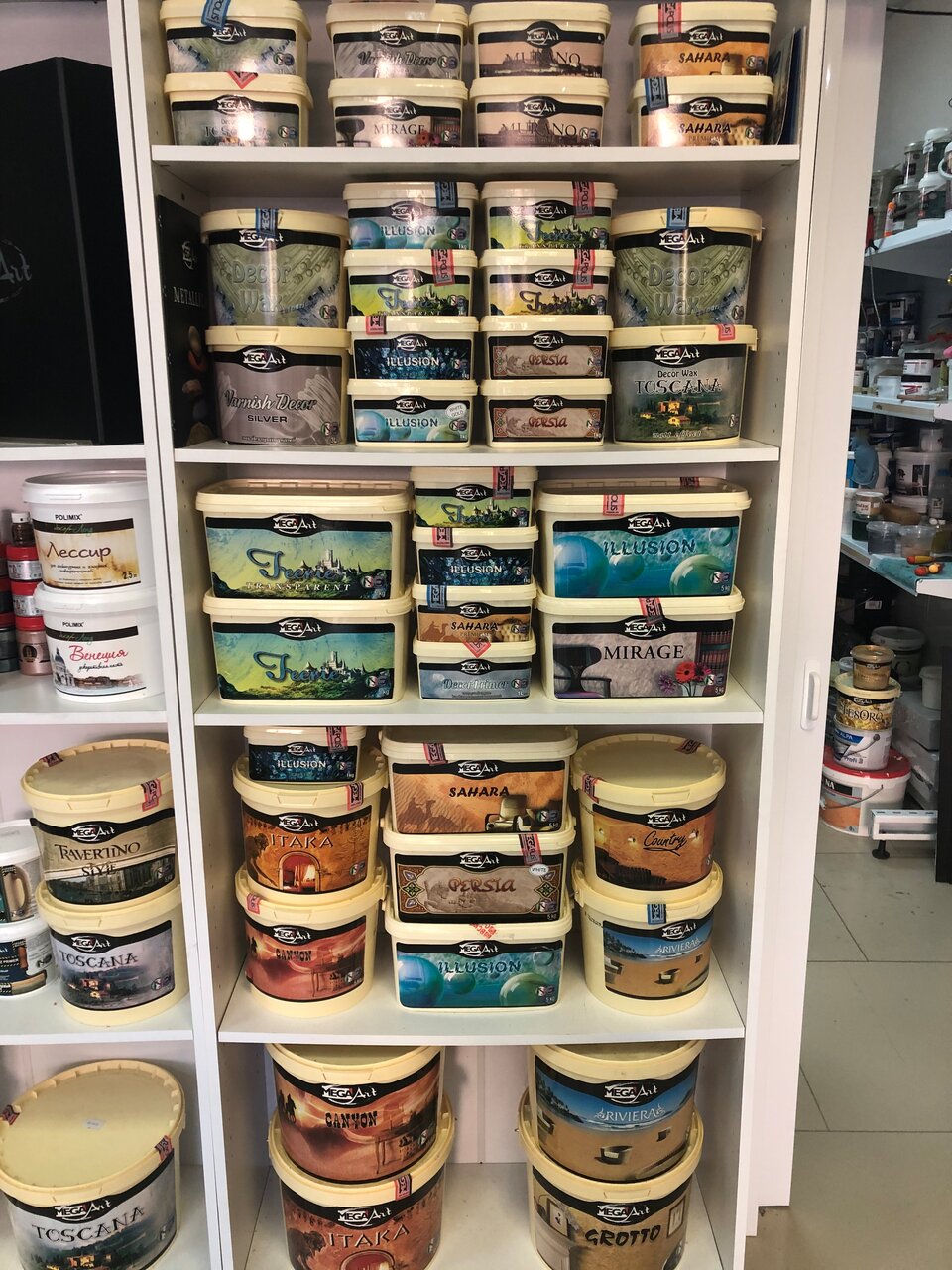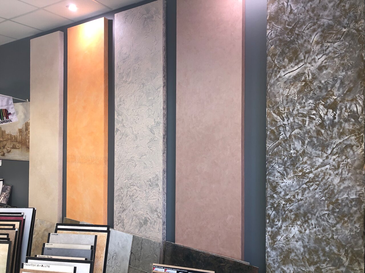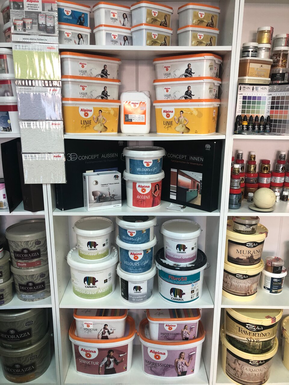 - Широкий выбор декоративных красок и штукатурок