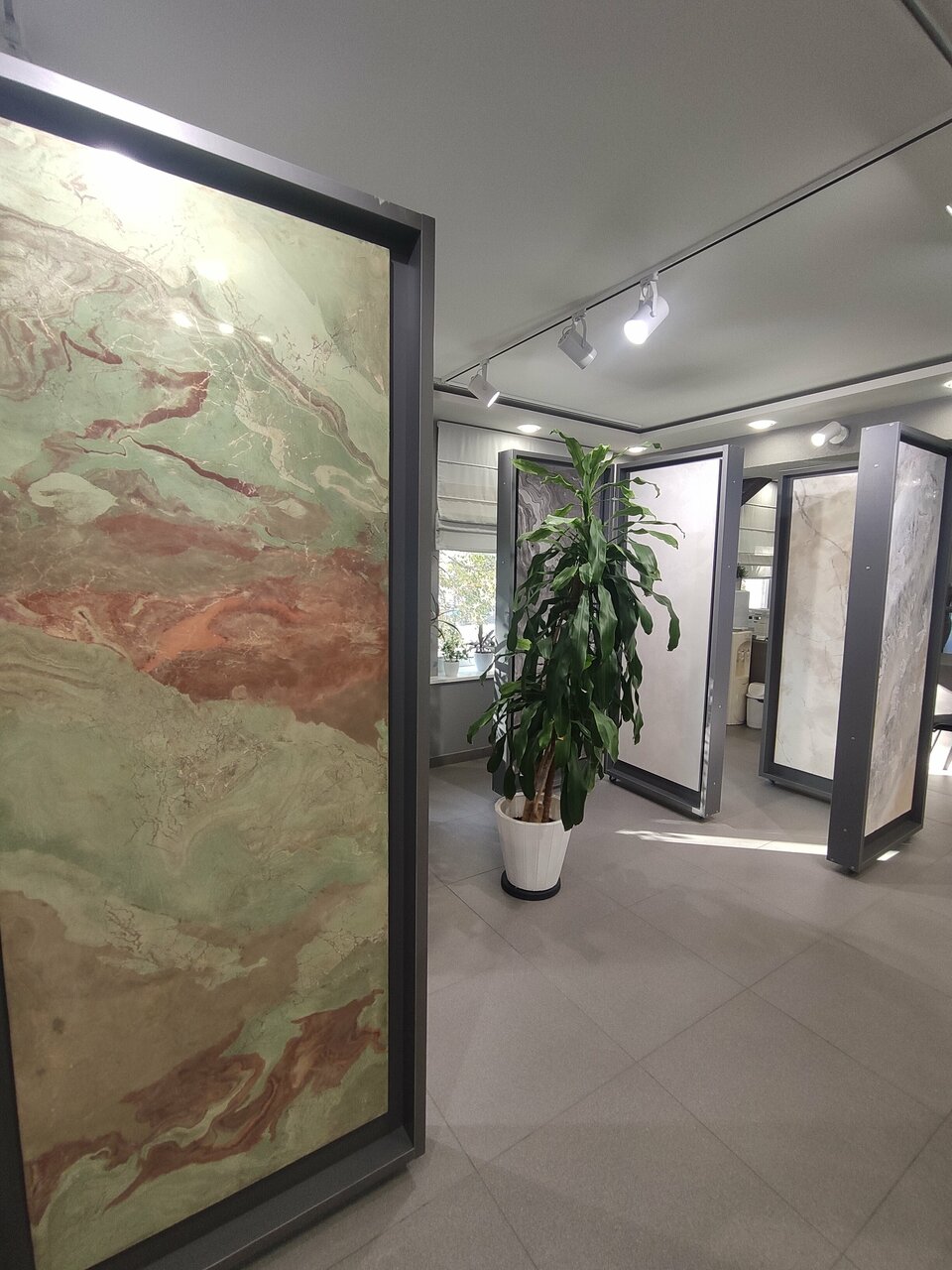 - Большое количество образцов декоративных покрытий