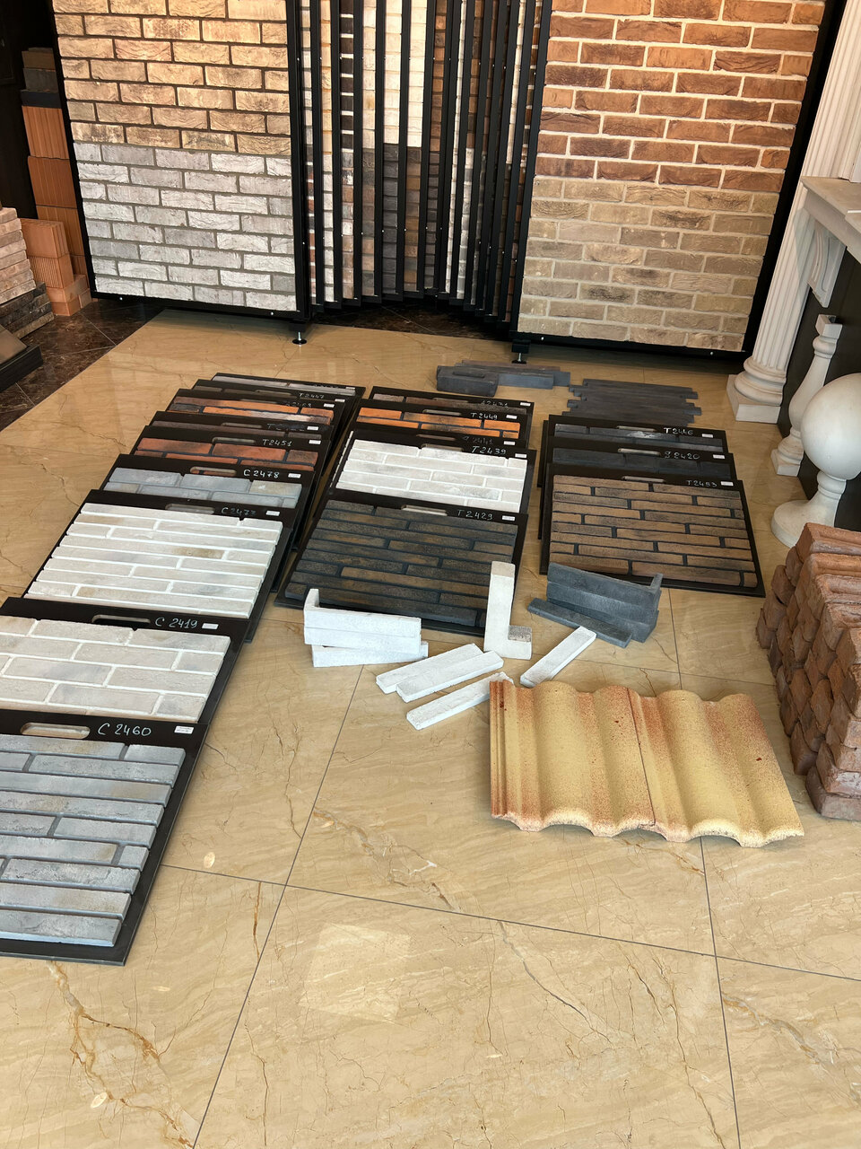 - Большой ассортимент кирпича и плитки