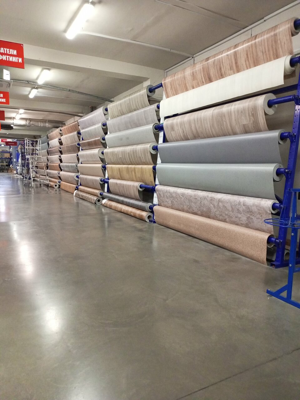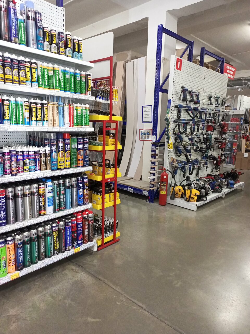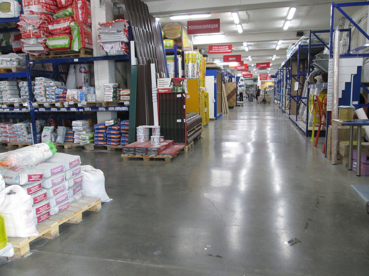- Широкий ассортимент (от гвоздей до краски, сантехники, линолеума)