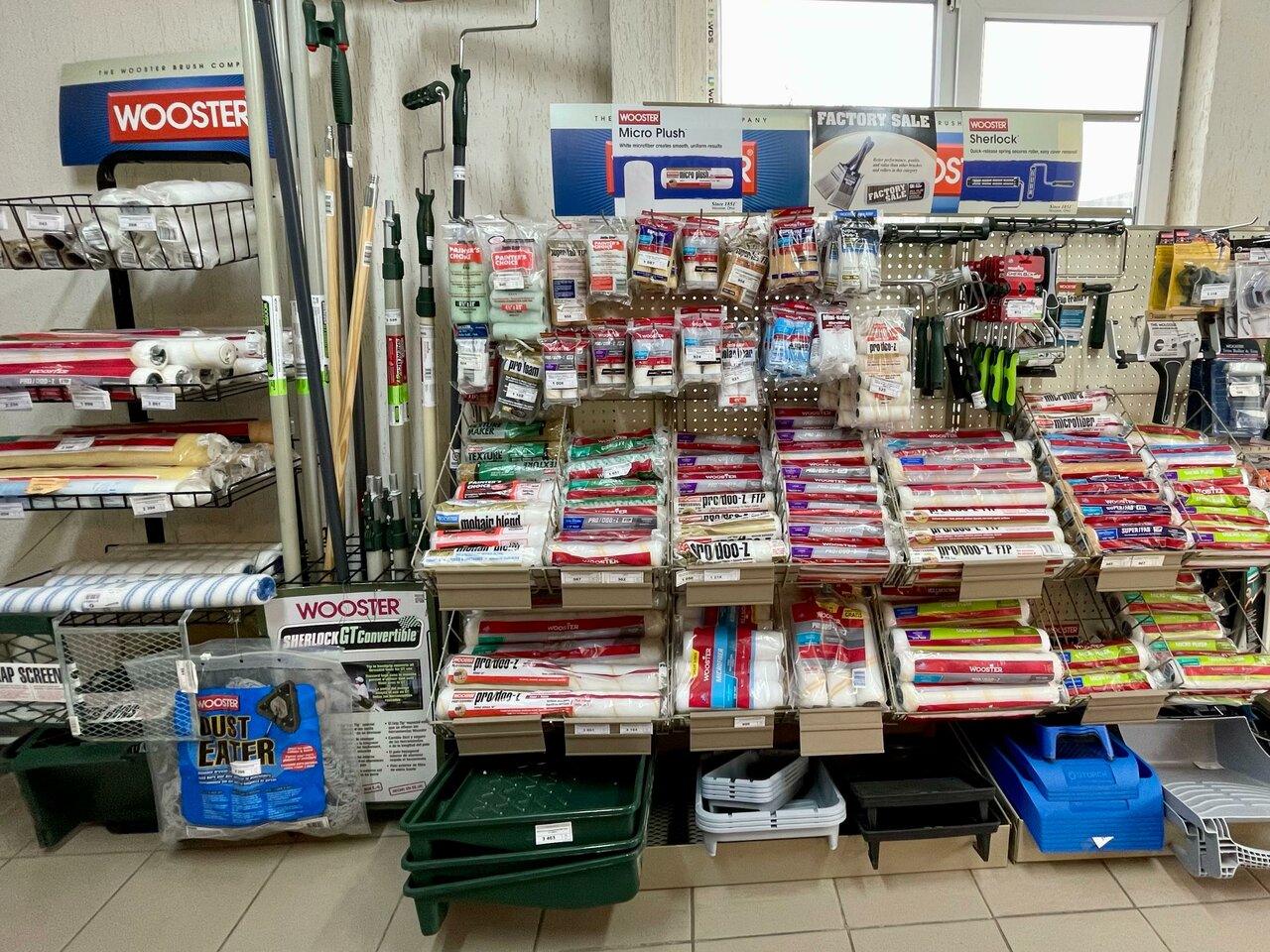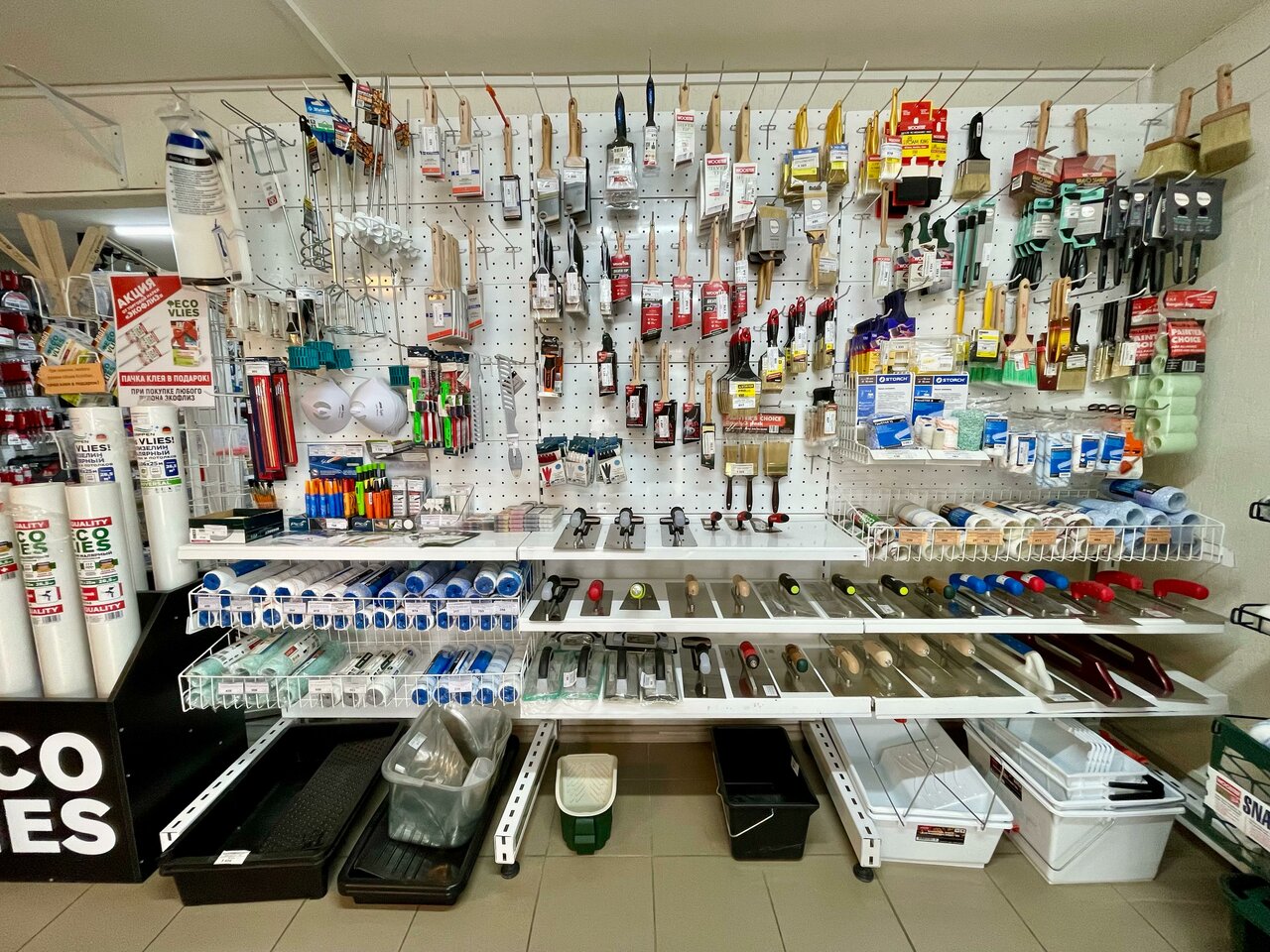 - Большой ассортимент стройматериалов и малярного инструмента