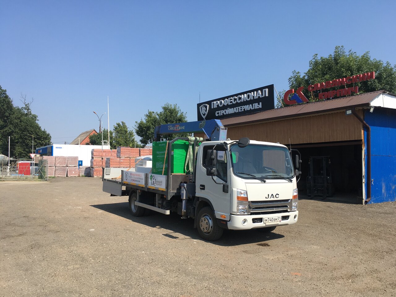 - Большой выбор стройматериалов (кирпич, газоблок, клей, лес)