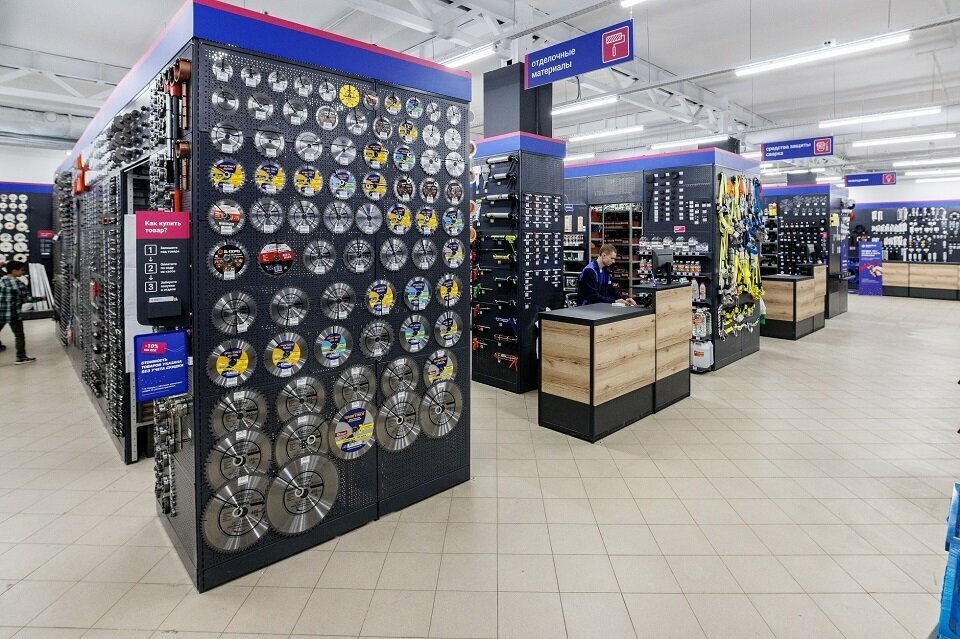 Большой выбор строительных и хозяйственных инструментов и материалов. Можно найти почти всё.