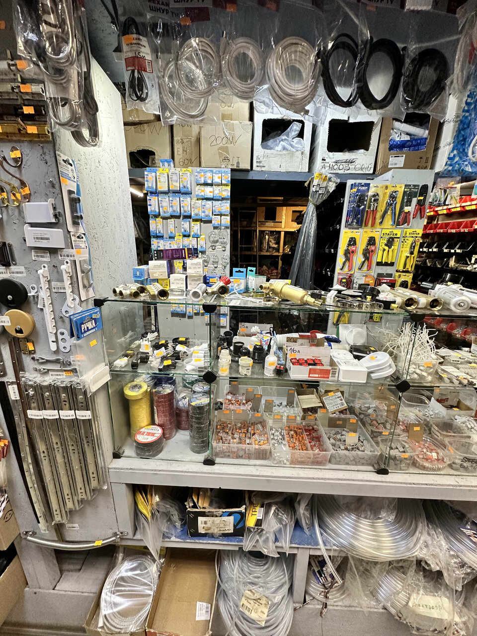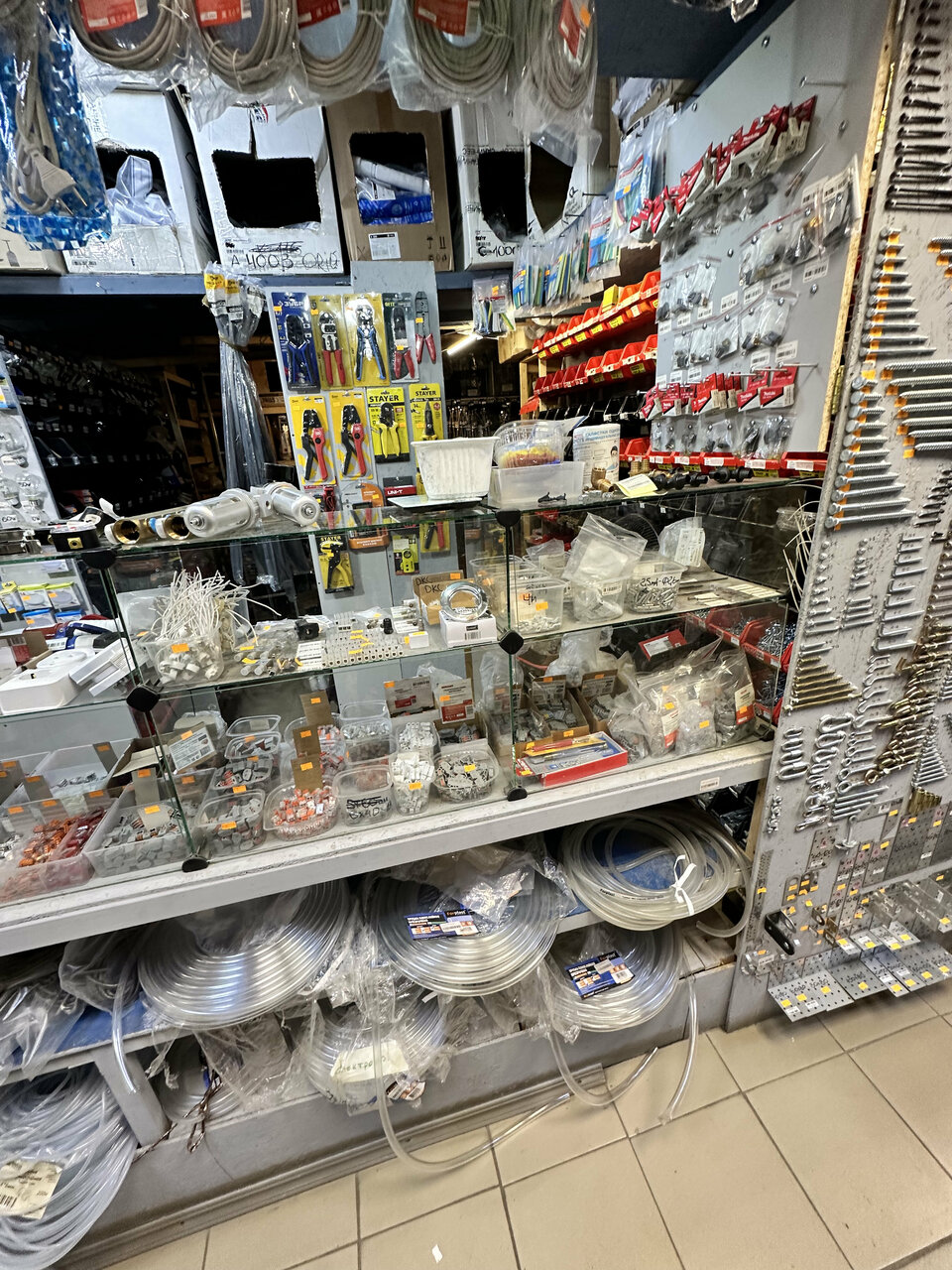 Маленький магазин, но есть практически все для обихода по всяким сантехническим, электрическим вещам.Полезный!