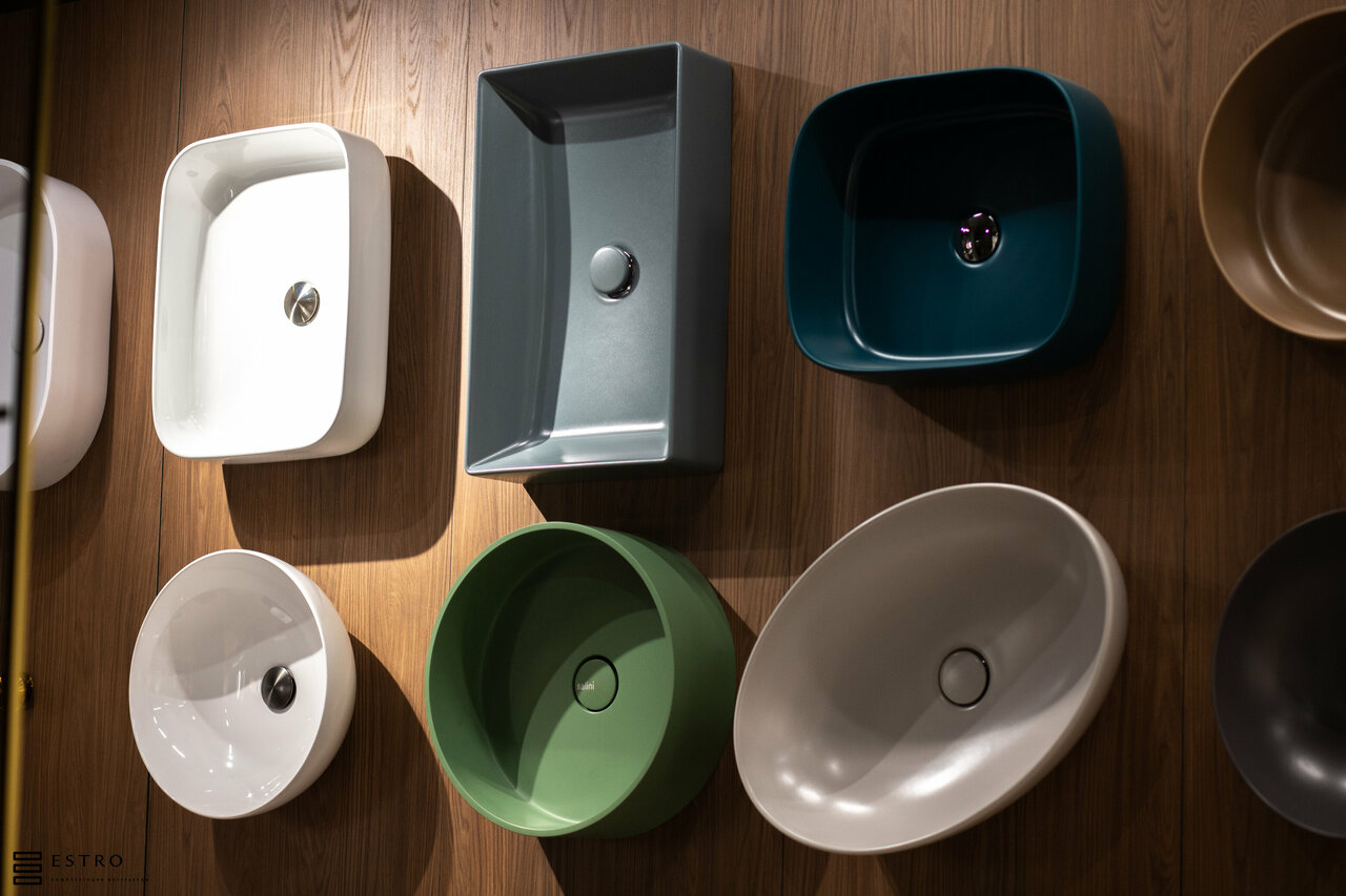 В салоне выставка цветной сантехники о которой даже не мечтала. Выбор продукции для треборательных ценителей дизайна интерьера