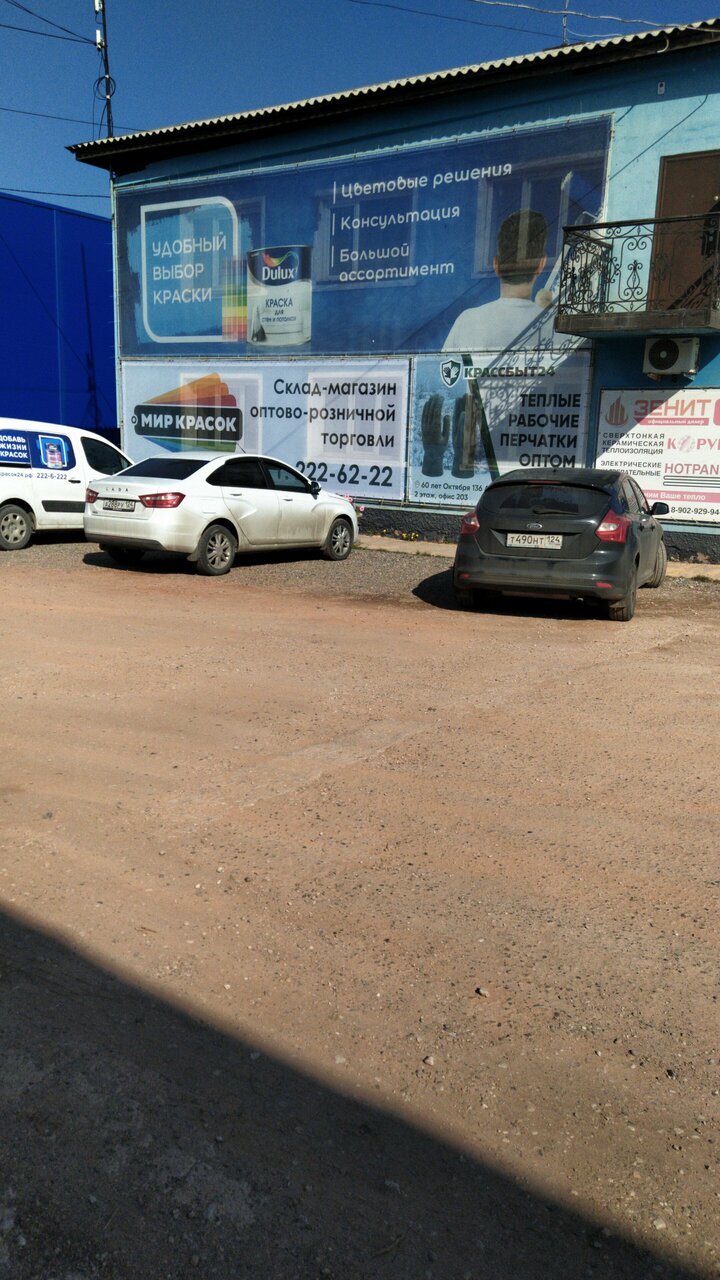 Мир красок в Красноярске по адресу улица 60 лет Октября, 136А: каталог товаров, официальный сайт, цены, режим работы, отзывы посетителей, номер телефона.