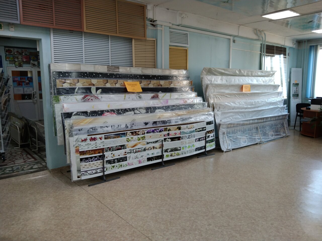 Хороший магазин, есть все для отделки. Можно подобрать к любому интерьеру. Большой выбор панелей представлен в зале, так же готовые варианты на потолок.