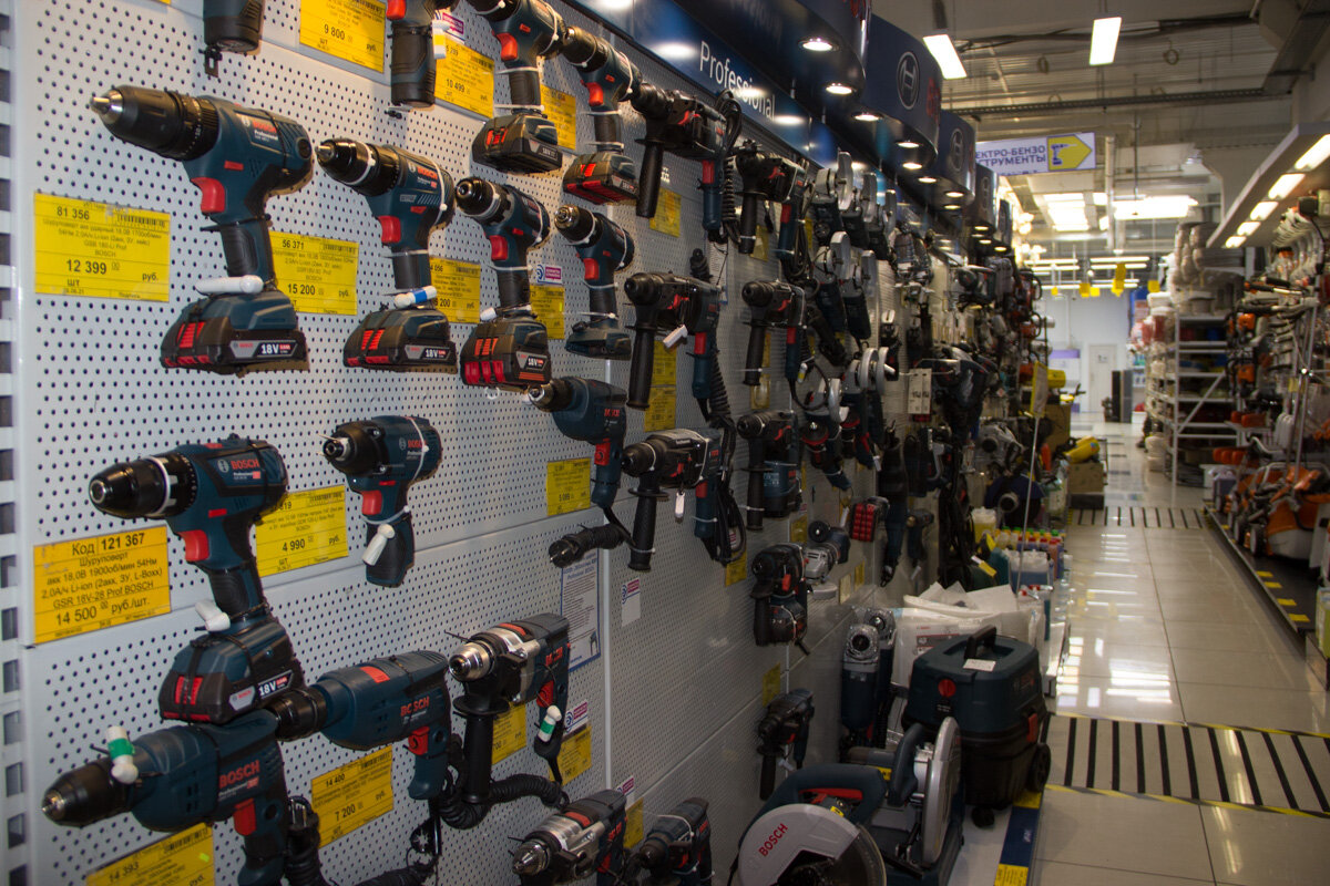 Большой выбор электроинструмента. Консультанты грамотно расскажут о каждой модели. Приезжал, брал шуруповёрт. Пользуюсь при -30, не жалею. Большой выбор запчастей на электроинструмент.
