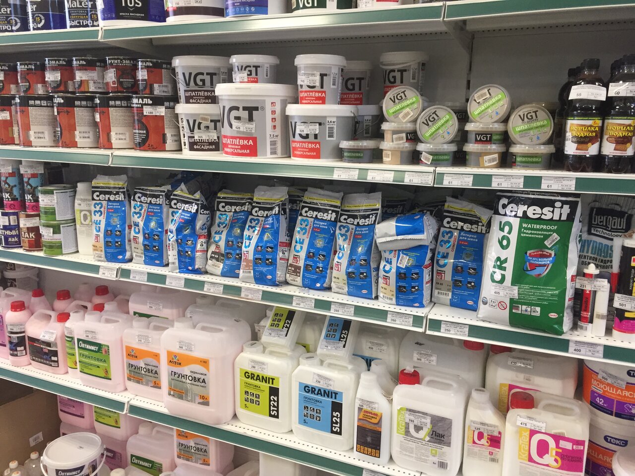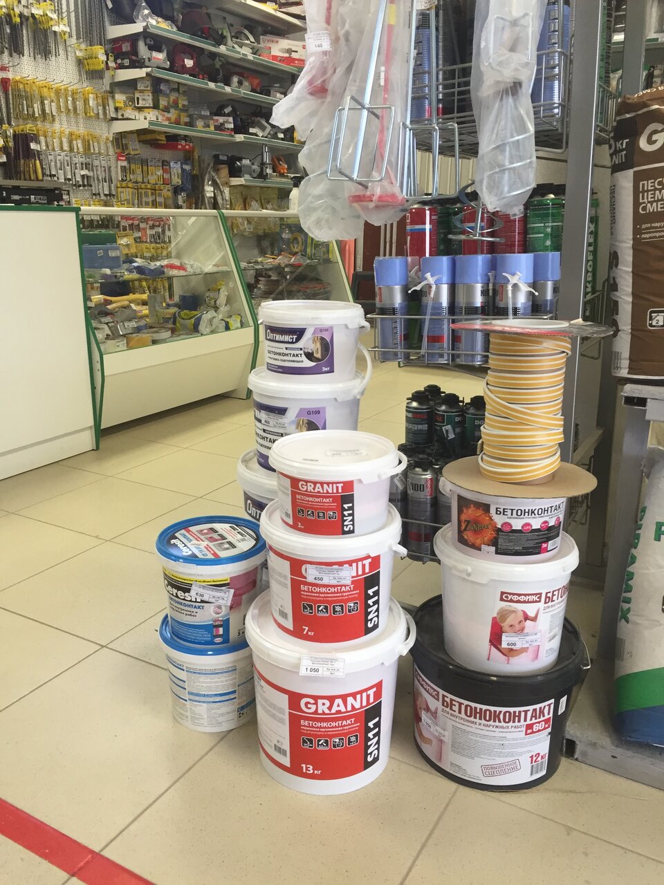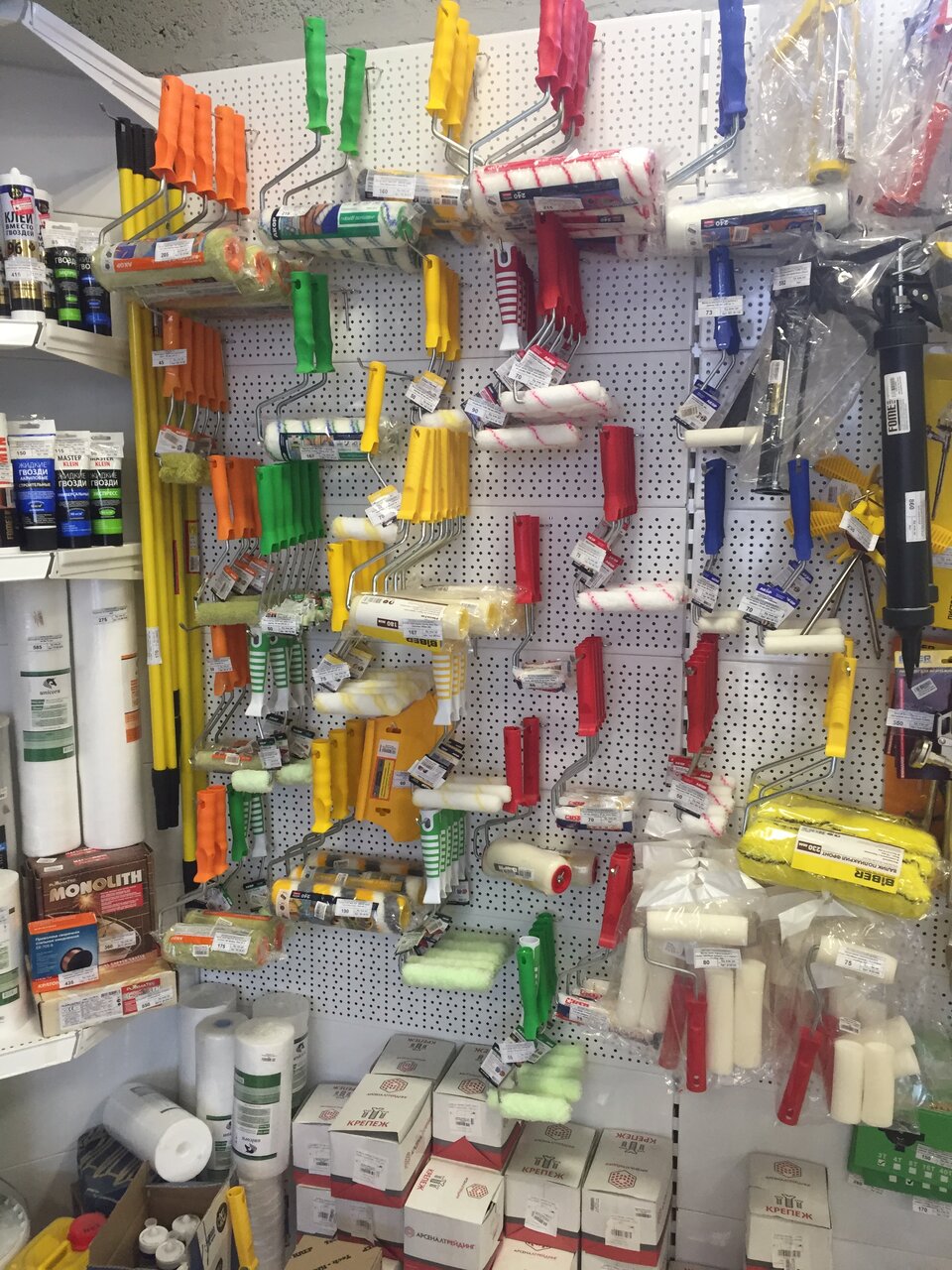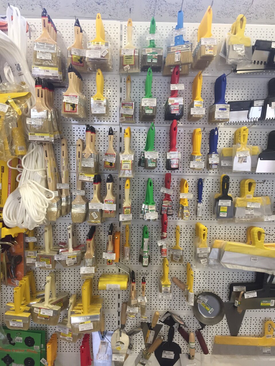 Товар на любой вкус, начиная от мелкого косметического ремонта, и заканчивая сантехника, брала швабру с ведром как положено, очень довольная покупкой. Персонал всегда подскажет, поможет.