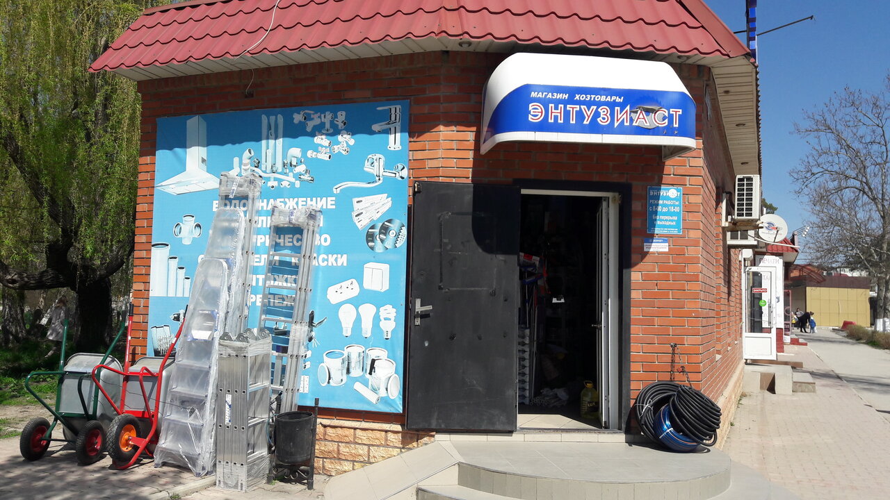 «Энтузиаст» — строительный магазин в Крымске, расположенный по адресу: ул. Ленина, 205. Торговая точка предлагает широкий ассортимент материалов, инструментов и сопутствующих товаров для строительства, ремонта и отделки. Работает ежедневно с 09:00 до 18:00. Контактный телефон: +7 (918) 344-54-75.