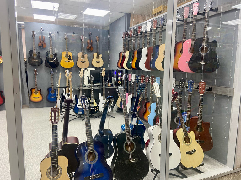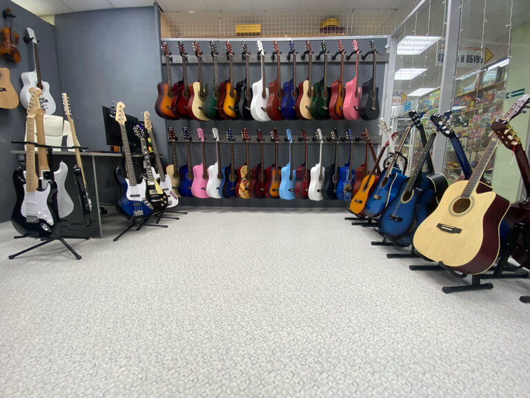 - Большой ассортимент гитар
