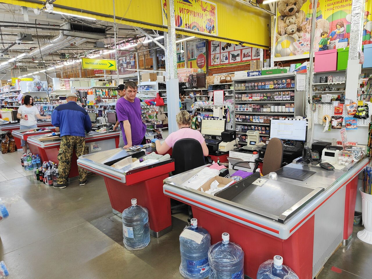 - Хороший ассортимент (от хозтоваров до продуктов)