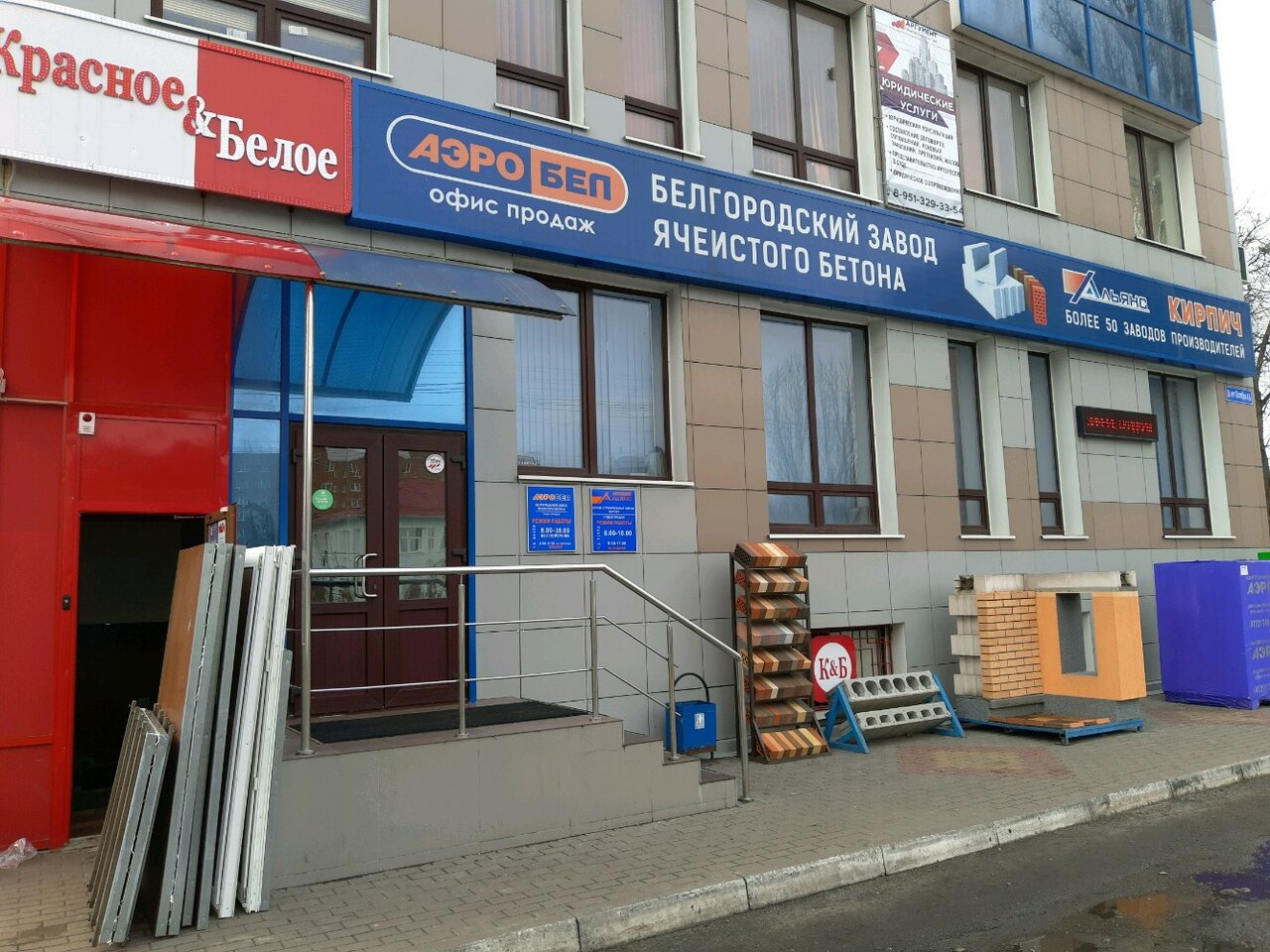 АэроБел – строительный магазин в Курске, расположенный по адресу: ул. 50 лет Октября, 4Б. Специализируется на продаже газобетона и других материалов для строительства и ремонта. Режим работы: пн-чт 08:00–18:00, пт 08:00–17:00. Контакты: телефон отдела продаж +7 (4712) 39-06-63, сайт (https://aerobel.ru/).