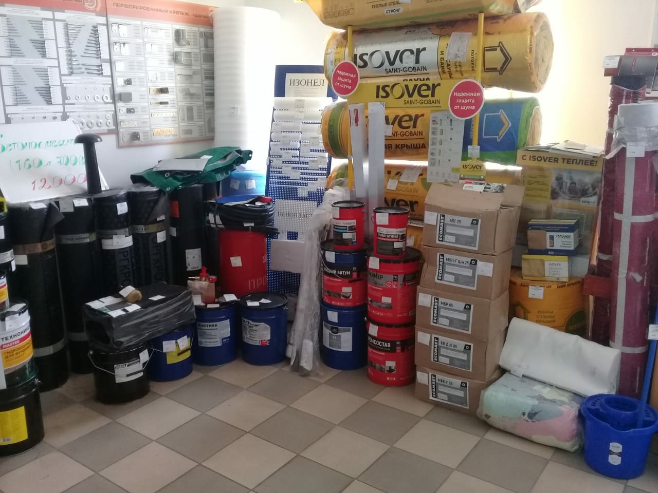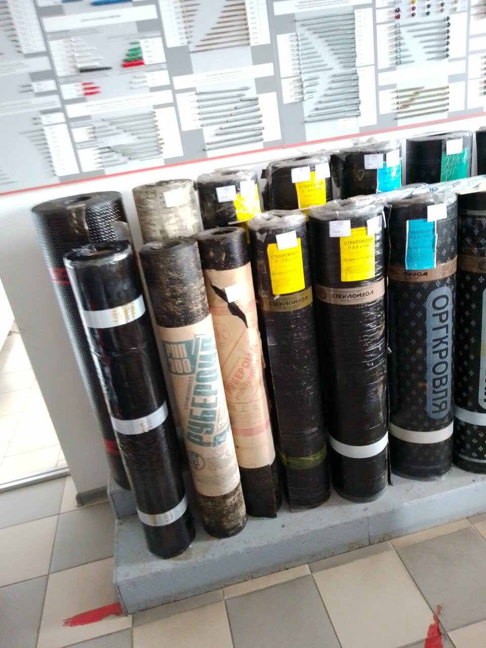 В магазине большой выбор гидроизоляции и кровли из битума, ребята сказали, что скоро будет хороший ассортимент по мелочевке, зайду ещё раз через неделю.