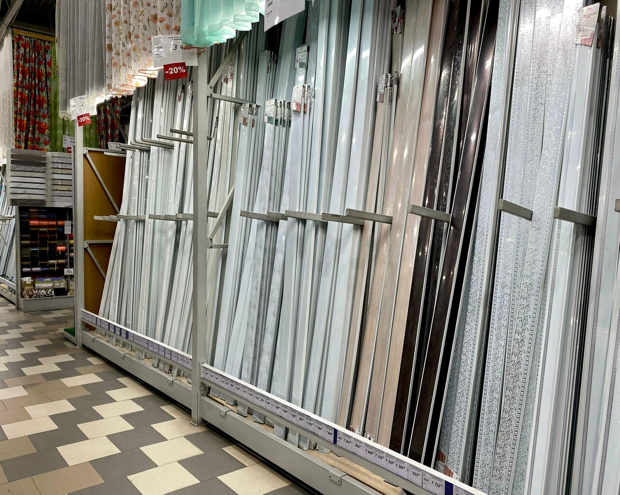 Есть всё для стройки и ремонта! Но например деревянные рейки только по 3 м, да и кривоваты, остальное можно и здесь купить