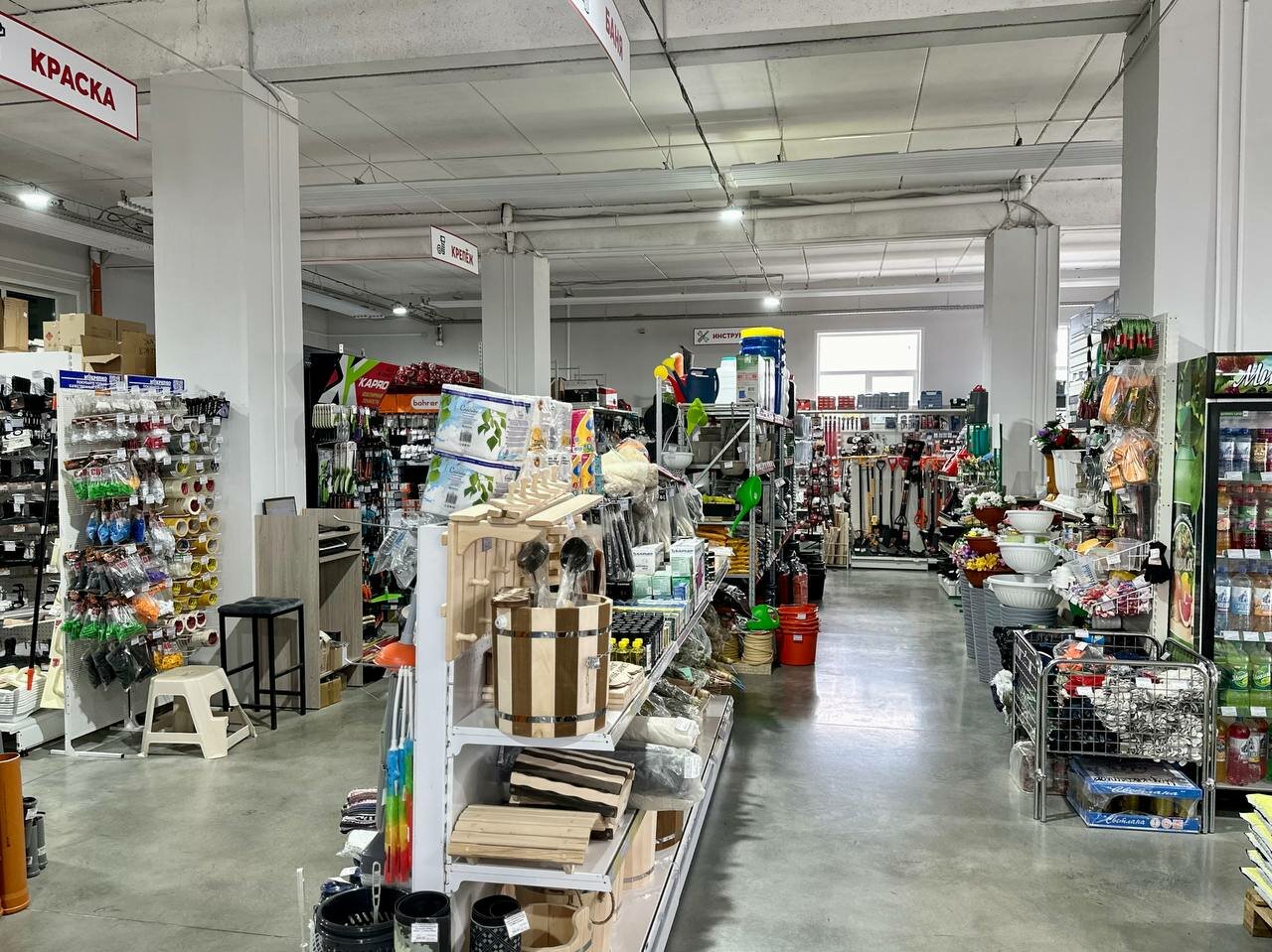 Замечательный магазин, цены дешевле чем в городе. Персонал приветливый . Купил много чего для стройки , а для бани купил очень классные веники .