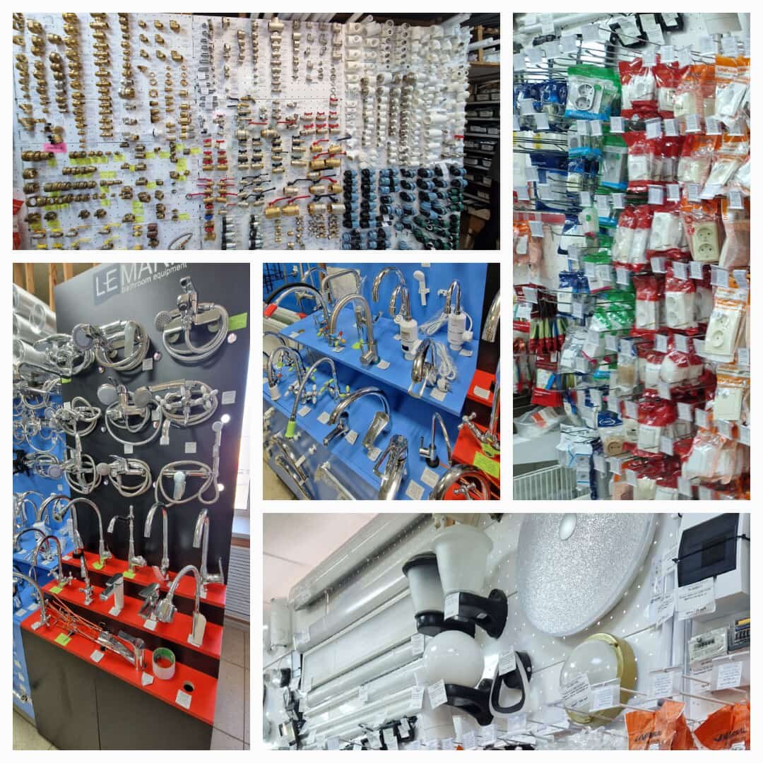 - Большой выбор товаров (от гвоздей до плитки)