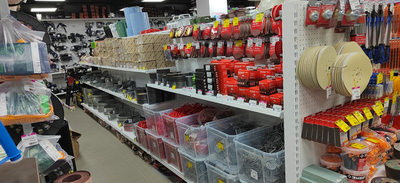 Есть много чего — расходники, инструмент, крепеж, силовая техника и много чего ещё. Персонал квалифицированный и вежливый, всегда готовы помочь и подсказать по ассортименту! Цены норм, а главная фишка в том что не надо далеко ехать!