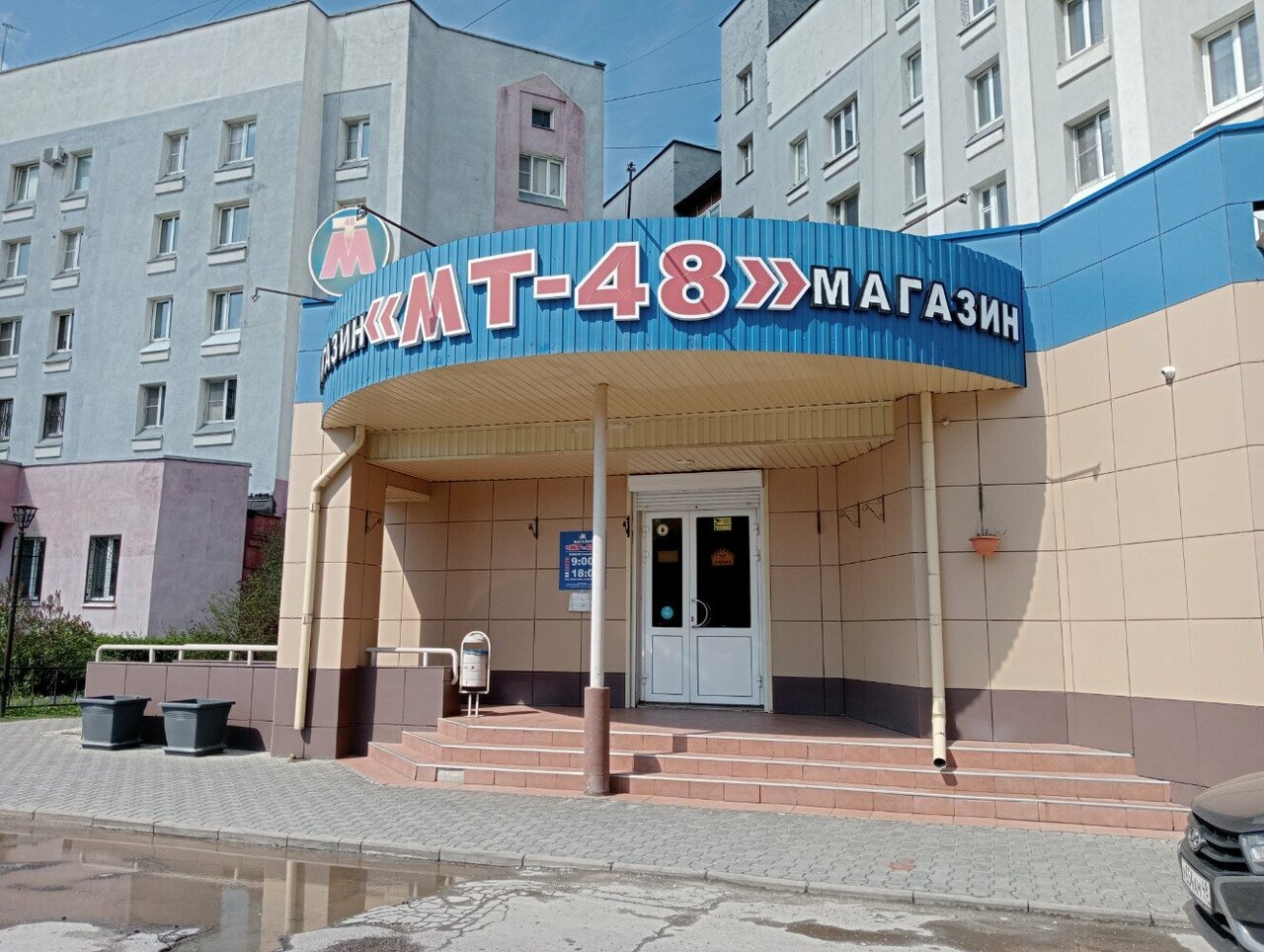 Магазин Мт48 находиться на первом этаже жилого дома. Ассортимент не слишком большой, магазин достойный. Есть много чего для мелкого ремонта + сантехника. Цены ниже гипермаркетов и специализированных магазинов сантехники.