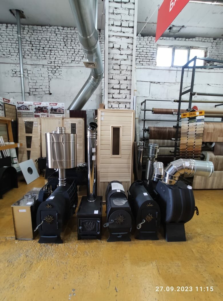 - Большой ассортимент для бани (отделка, печи)