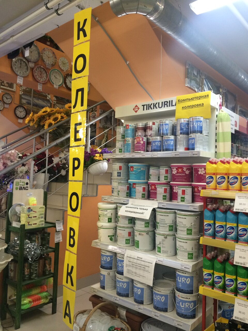 Хороший магазин, хороший выбор, там скоро будет КФС. 2 минуса этого магазина, первое это безобразные ящики хранение то замок не работает то ещё что то, я обратился к сотрудникам второй раз, надеюсь примут меры. Второе это обслуживание на втором этаже, к примеру покупаю крючки для штор на втором этаже, девушка — продавец, выдаёт номер штрих кода, и просит что бы я оплатил на первом этаже, потом после оплаты надо подняться на второй этаж показать чек и тогда получишь товар. Скажите пожалуйста это вообще разве правильно? Надеюсь руководство обратит на это внимание.