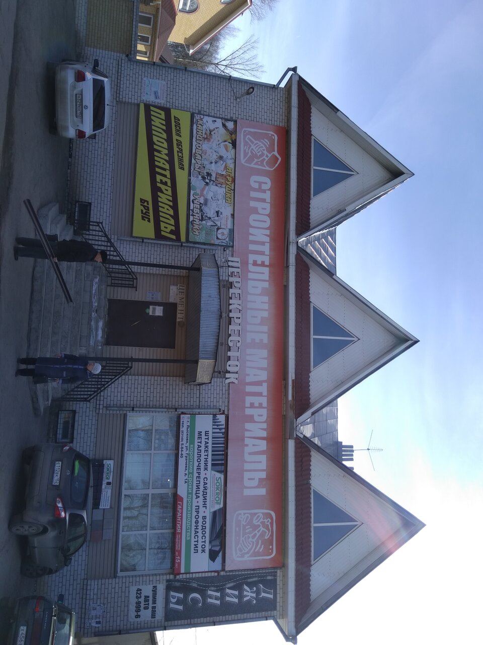 В здании несколько магазинов, основное на данный момент строительные материалы… Парковка хорошая. Цены как везде. Огромный плюс это то что можно купить тес в городе, не выезжая далеко..