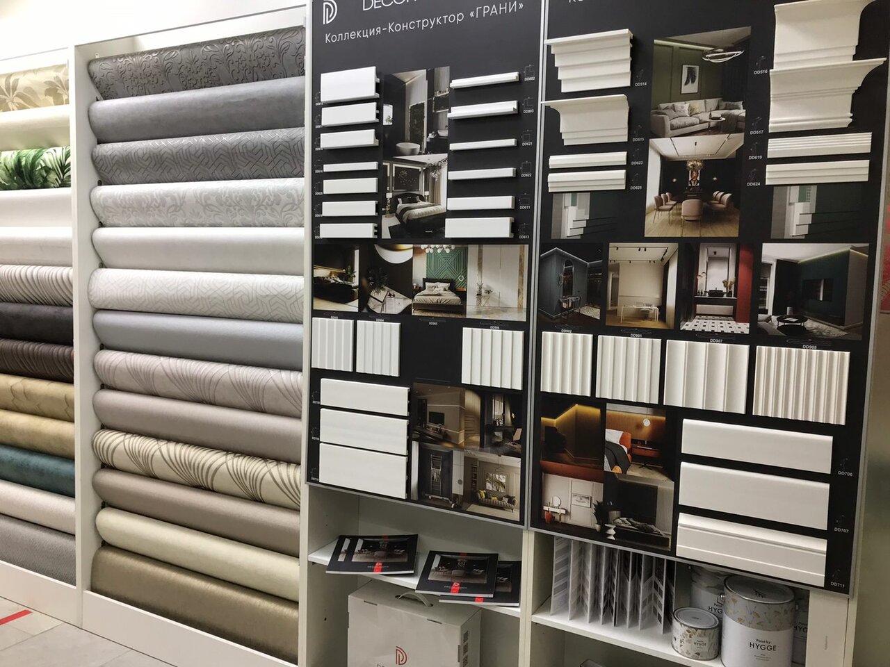 - Большой выбор обоев и плитки
