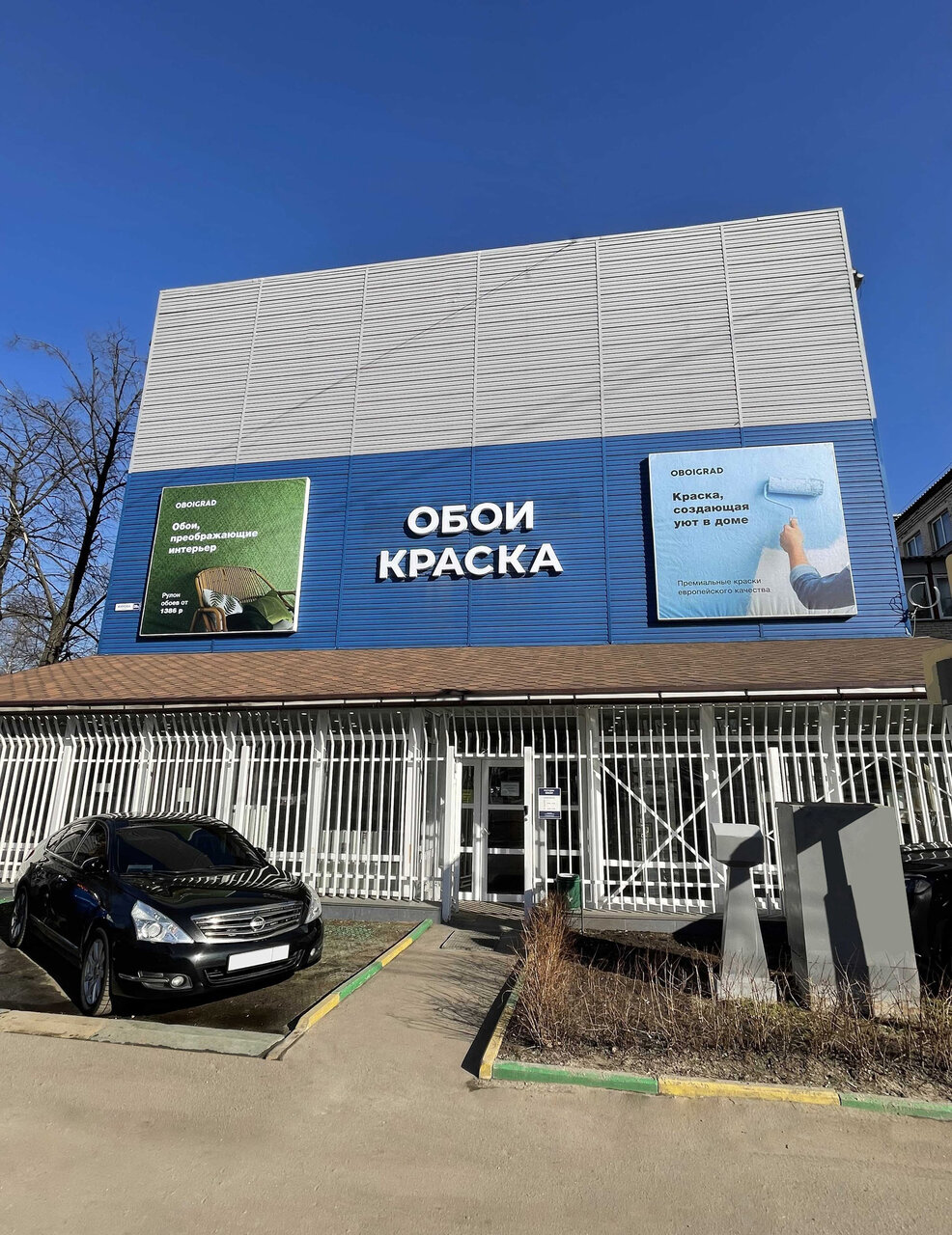 Есть где припарковаться, большой просторный магазин с хорошим выбором обоев на витринах и в каталогах.