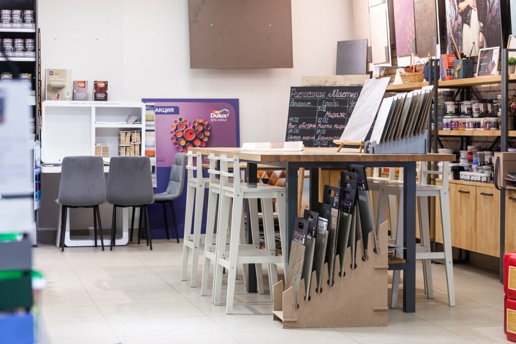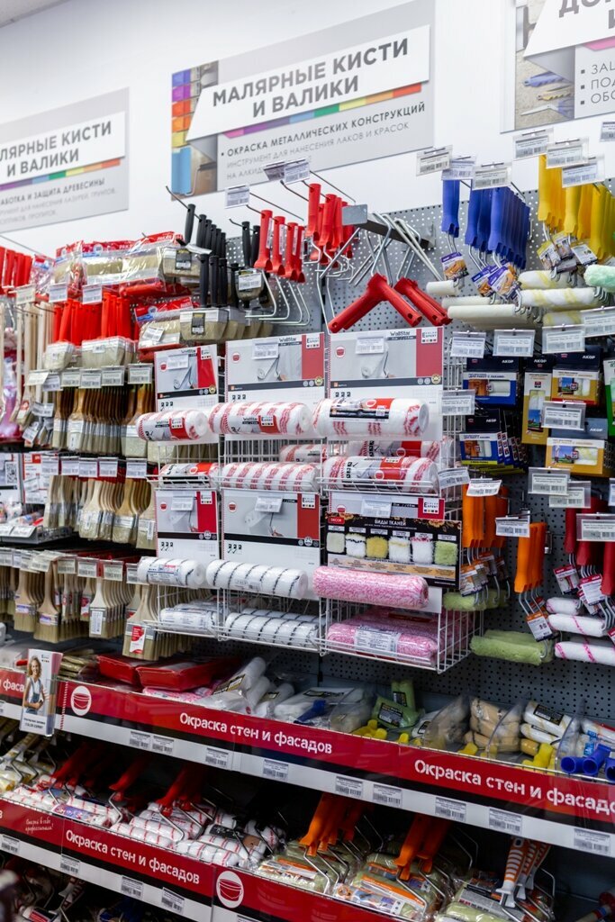- Хорошие цены (не завышены); Широкий ассортимент красок, клея и других принадлежностей; Практически полный ассортимент необходимых товаров; Возможность компьютерной колеровки; Помощь продавцов-консультантов в подборе и расчётах