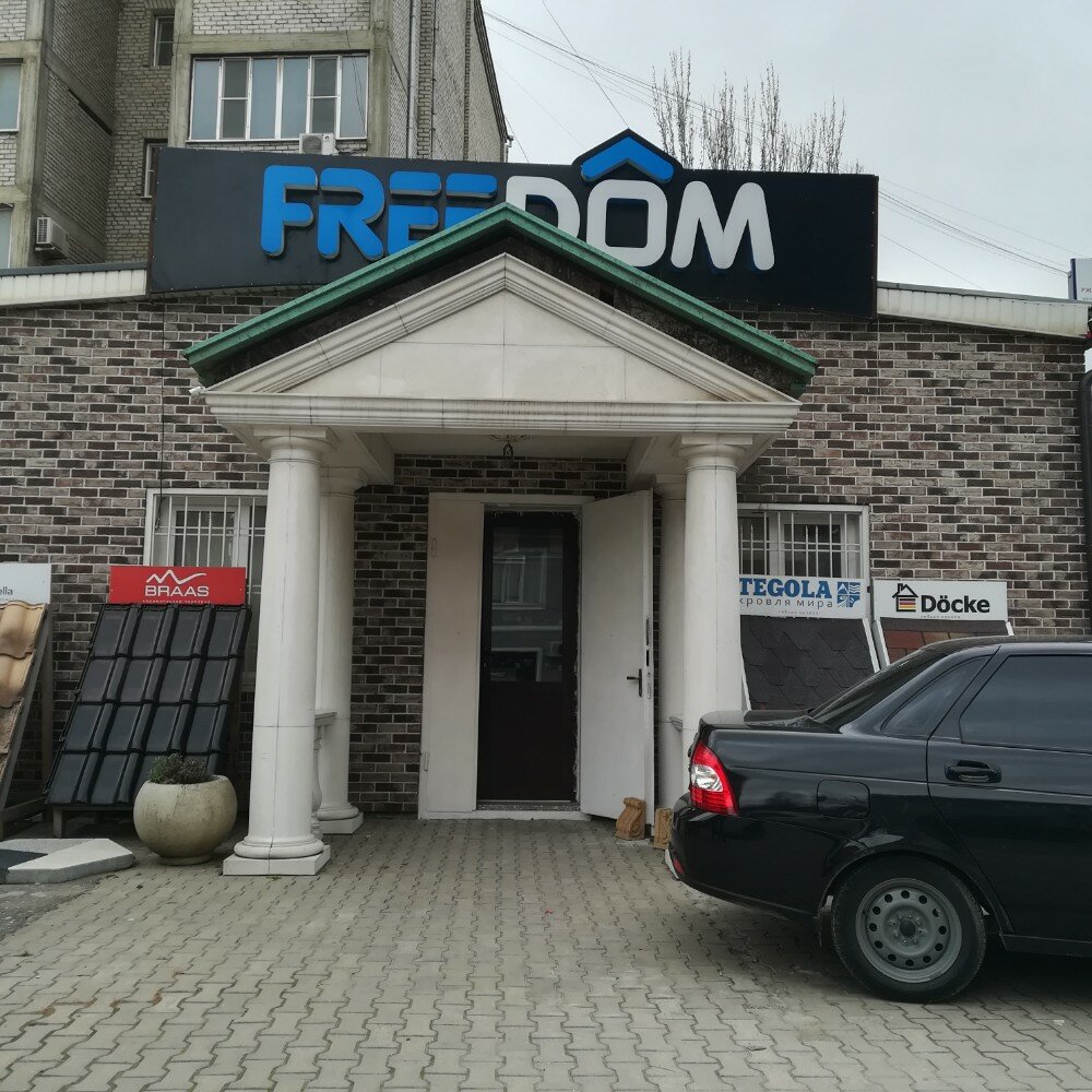 Freedom – строительный магазин в Махачкале, предлагающий широкий ассортимент кровельных материалов. В ассортименте: фальцевая и сланцевая кровля, металлочерепица, профнастил, битумная и керамическая черепица. Работает ежедневно с 09:00 до 18:00 по адресу: ул. Ирчи Казака, 18/2. Контакты: +7 (967) 400-73-37, +7 (928) 047-99-88, +7 (928) 677-75-45.