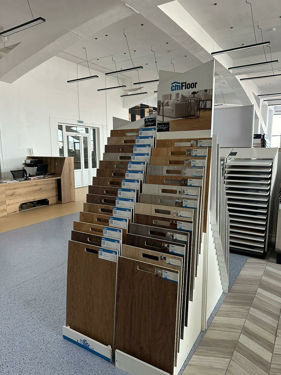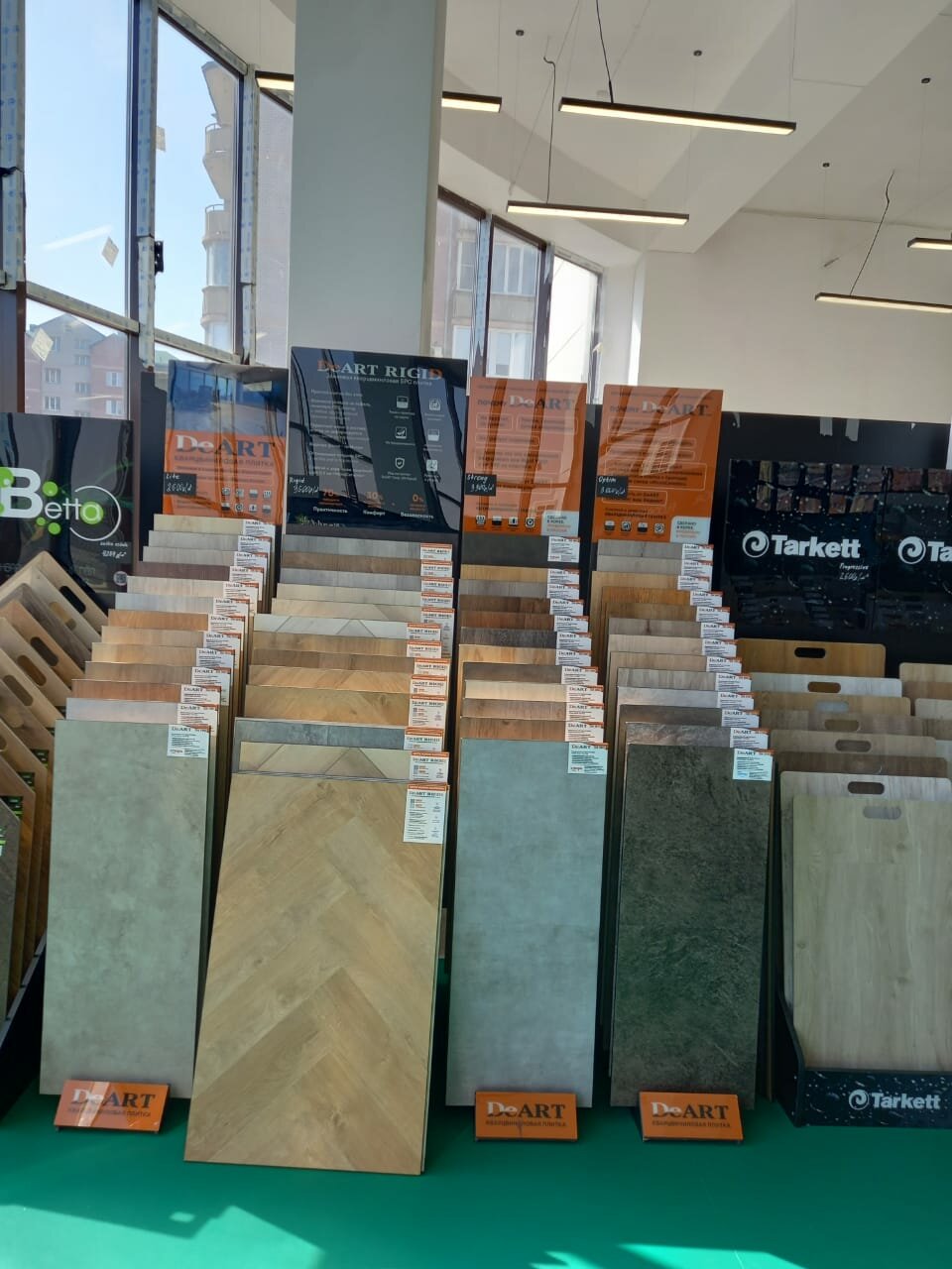 - Большой ассортимент напольных покрытий