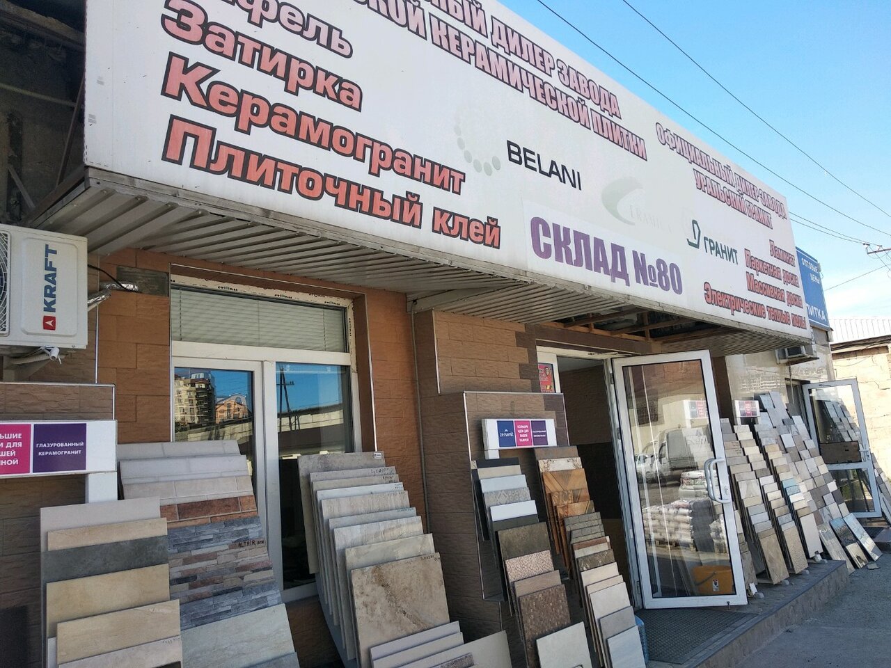 Склад № 80 — строительный магазин в Махачкале, расположенный по адресу: 1-й тупик Бейбулатова, 8. Торговая точка предлагает широкий ассортимент материалов, инструментов и сопутствующих товаров для строительства, ремонта и отделки. Режим работы: с понедельника по четверг, а также в субботу и воскресенье с 09:00 до 18:00. Контактный телефон: +7 (928) 062-33-26.