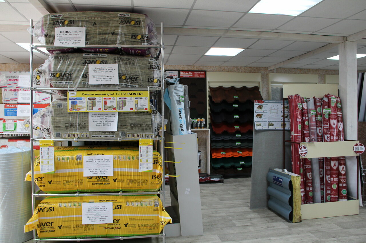 Большой выбор строительных материалов кровельного и напольного покрытия, грамотные консультанты, предоставляются скидки.