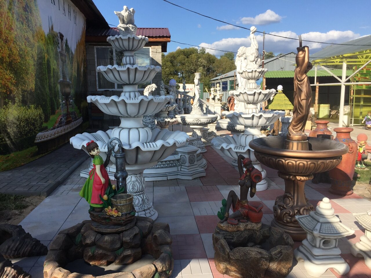 Удобный подъезд, есть милые статуи, тротуарная плитка. Проводят обновление магазина, комфортный для покупателей, Ориентируются на мнение покупателей. Вежливый персонал, довольно хороший ассортимент