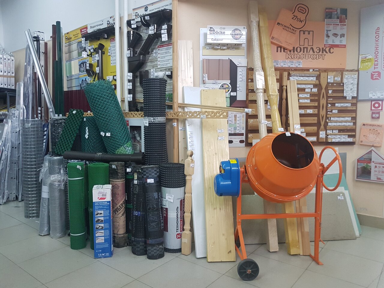 С виду маленький магазинчик, но там можно найти всё, что нужно для строительства, ремонта и даже для сада и огорода. Очень удобно, что есть сайт магазина и приложение для телефона — можно сделать заказ, не выходя из дома. Всё привезут в тот же день.