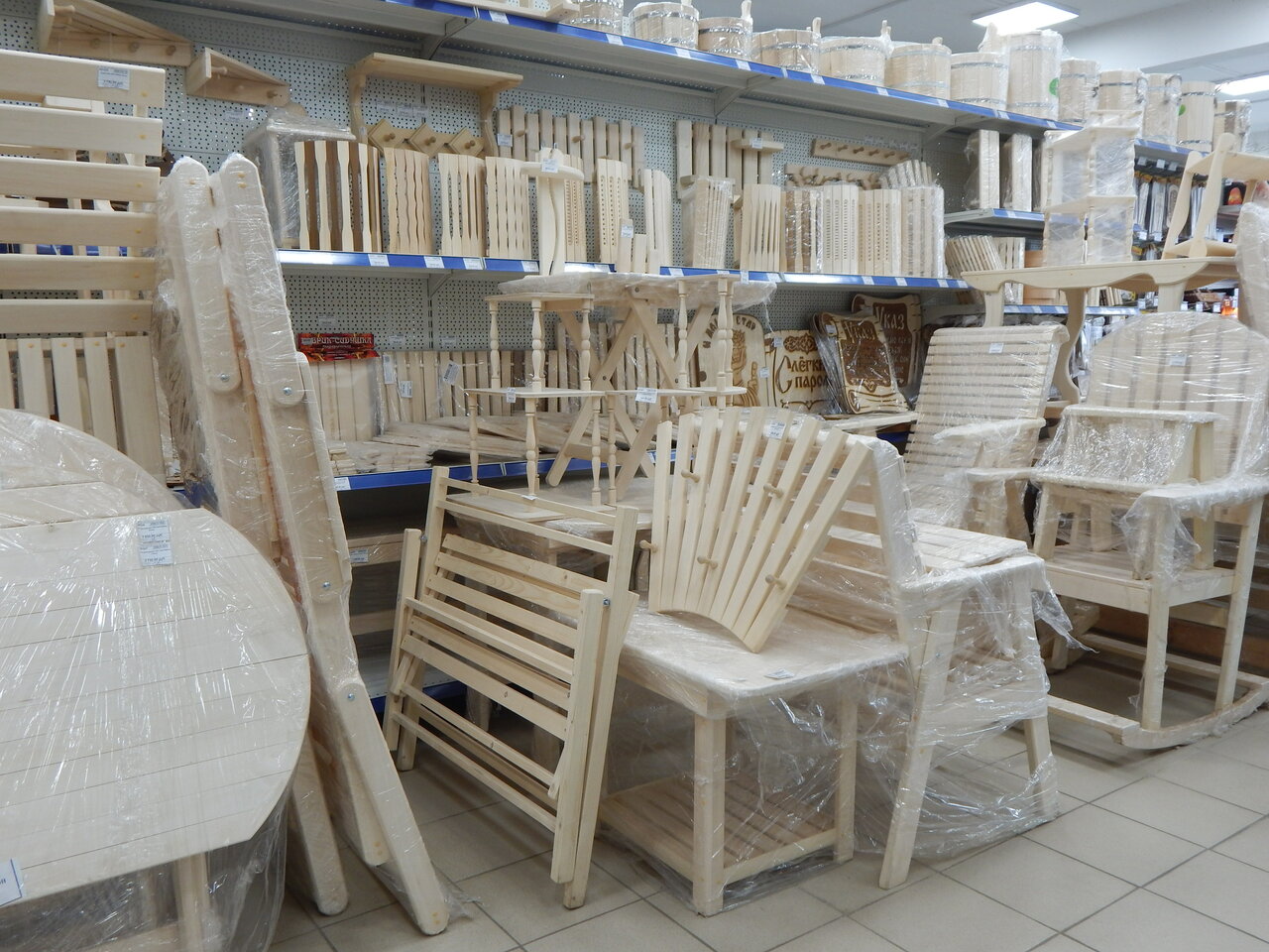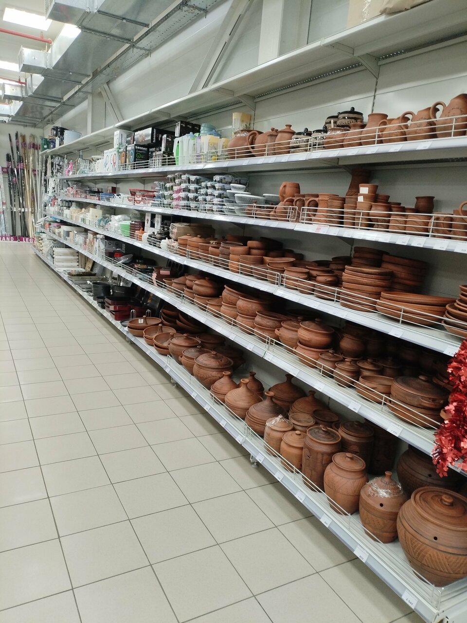 - Огромный ассортимент (от посуды до стройматериалов)