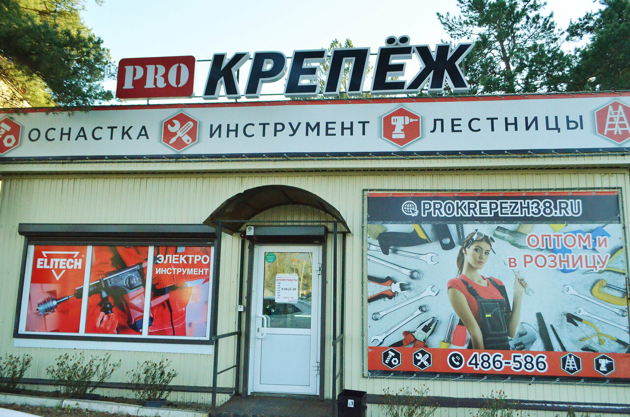 PRO-Крепеж — строительный магазин в поселке Молодежный (Трактовая ул., 8), предлагающий профессиональные инструменты и крепежные материалы. В ассортименте — продукция Bosch, Makita и Elitech. Работает ежедневно с 09:00 до 18:00. Контакты: +7 (3952) 48-65-86, сайт: (https://prokrepezh38.ru/).