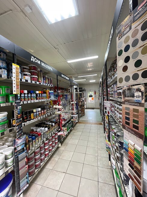 Краски Дом маляра – строительный магазин в Молодях, предлагающий широкий ассортимент лакокрасочных материалов, инструментов и товаров для ремонта. Расположен по адресу: Магистральная улица, 202. Специализируется на колеровке красок.