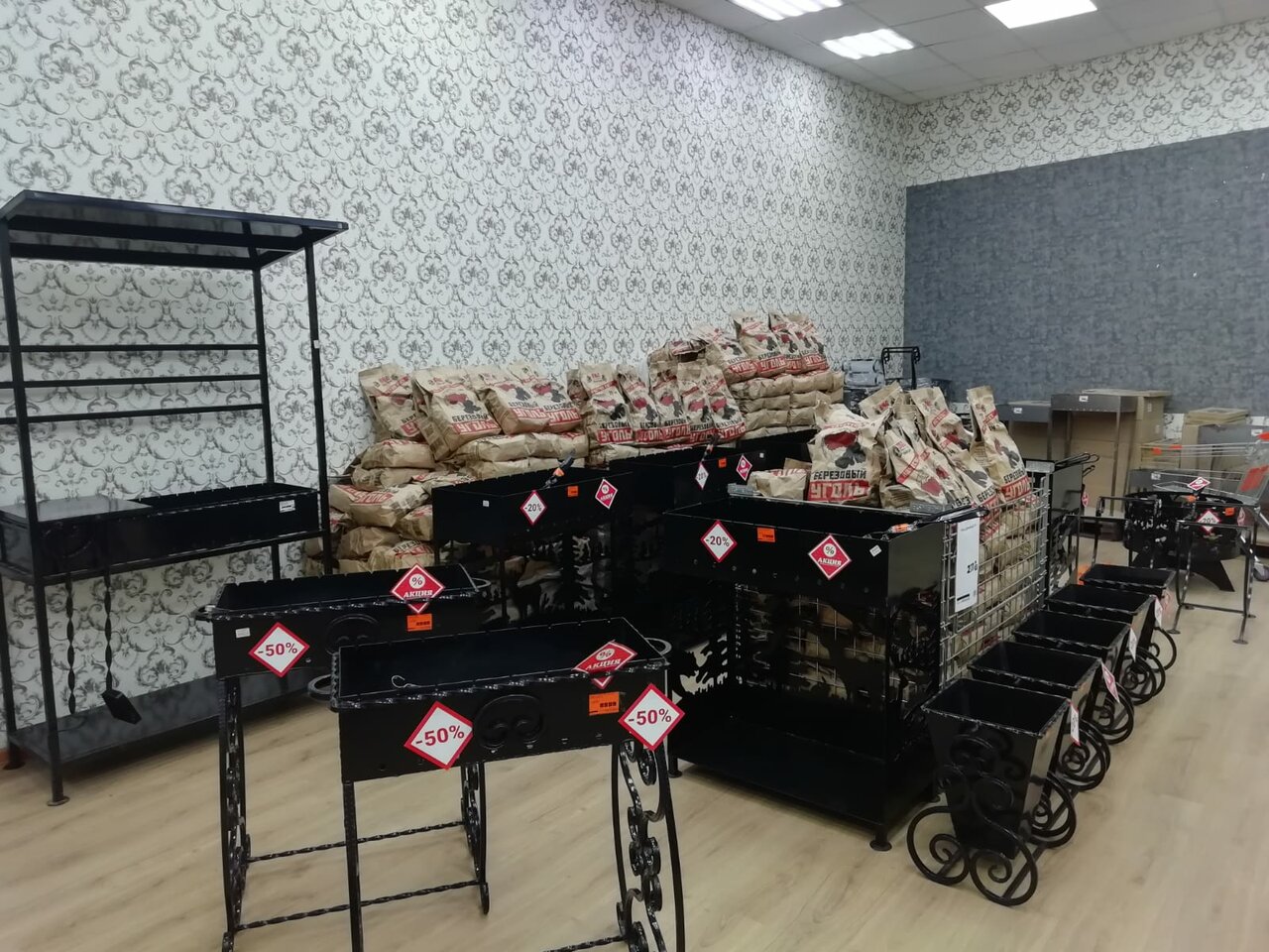 Много товаров, но трудно найти где что и продавцов ловить надо. За товаром приходится идти лабиринтами через мебельный магазин.