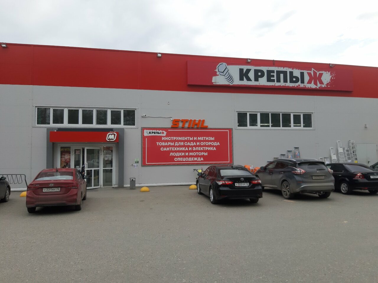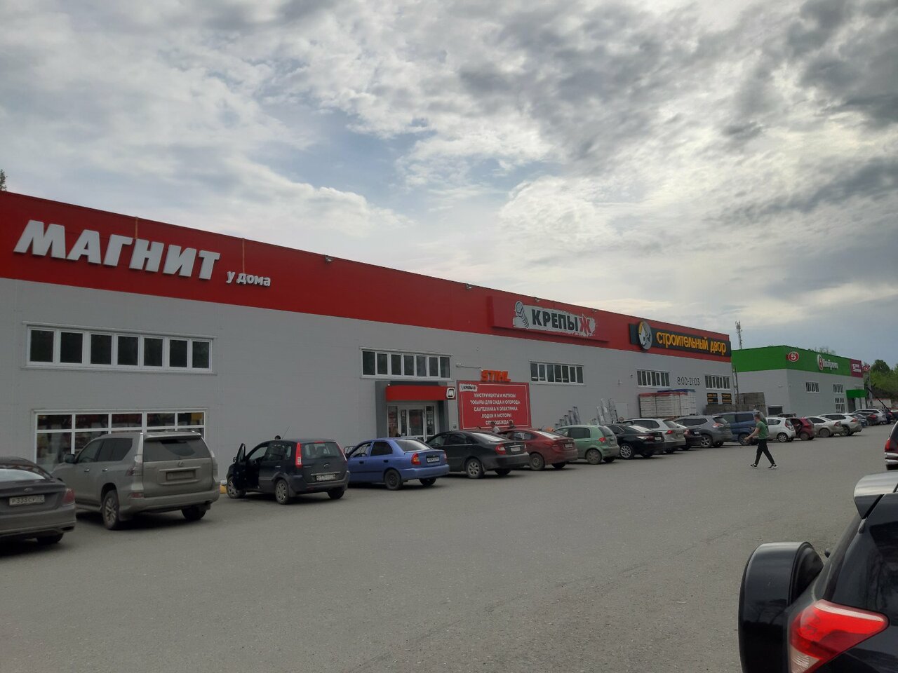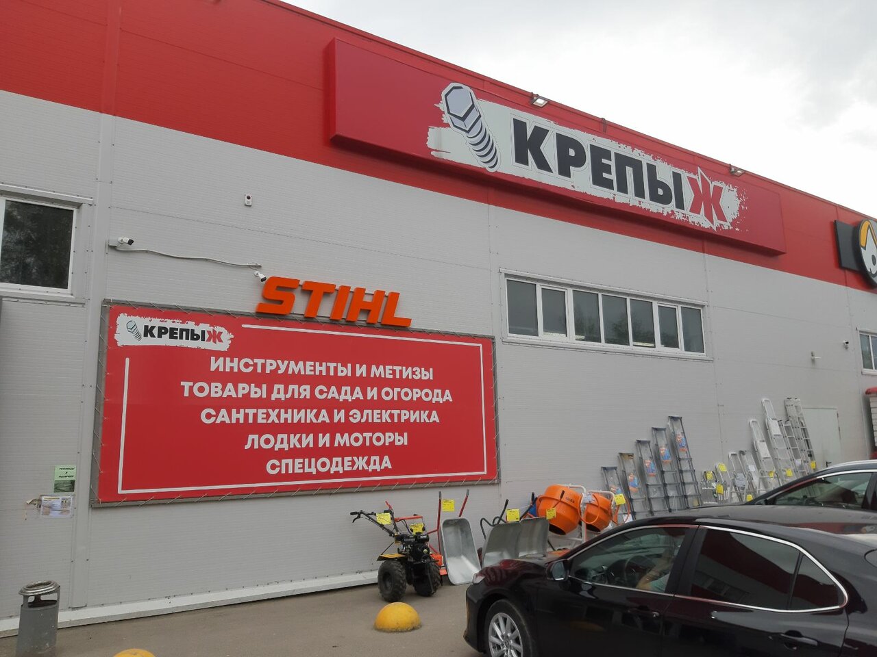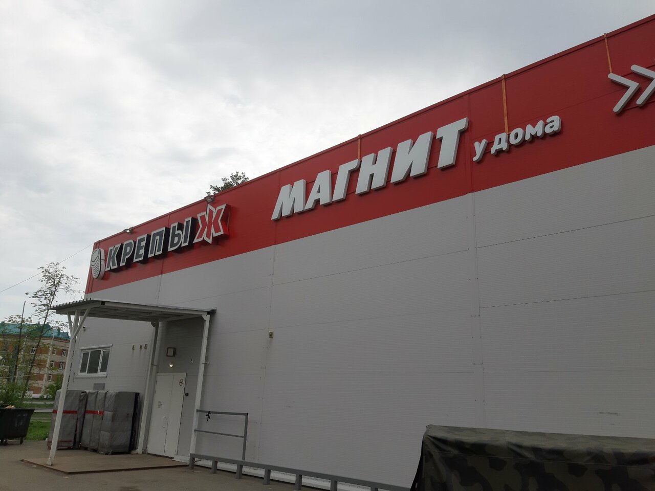 Большой, всё есть как во всех Крепыжах от семян до садового оборудования. Хорошая стоянка, приветливые продавцы. Всё подскажут.