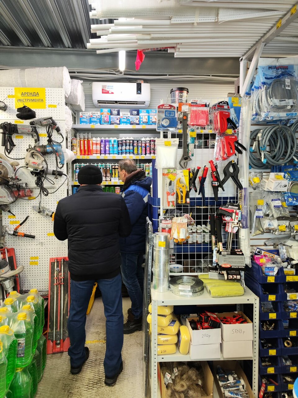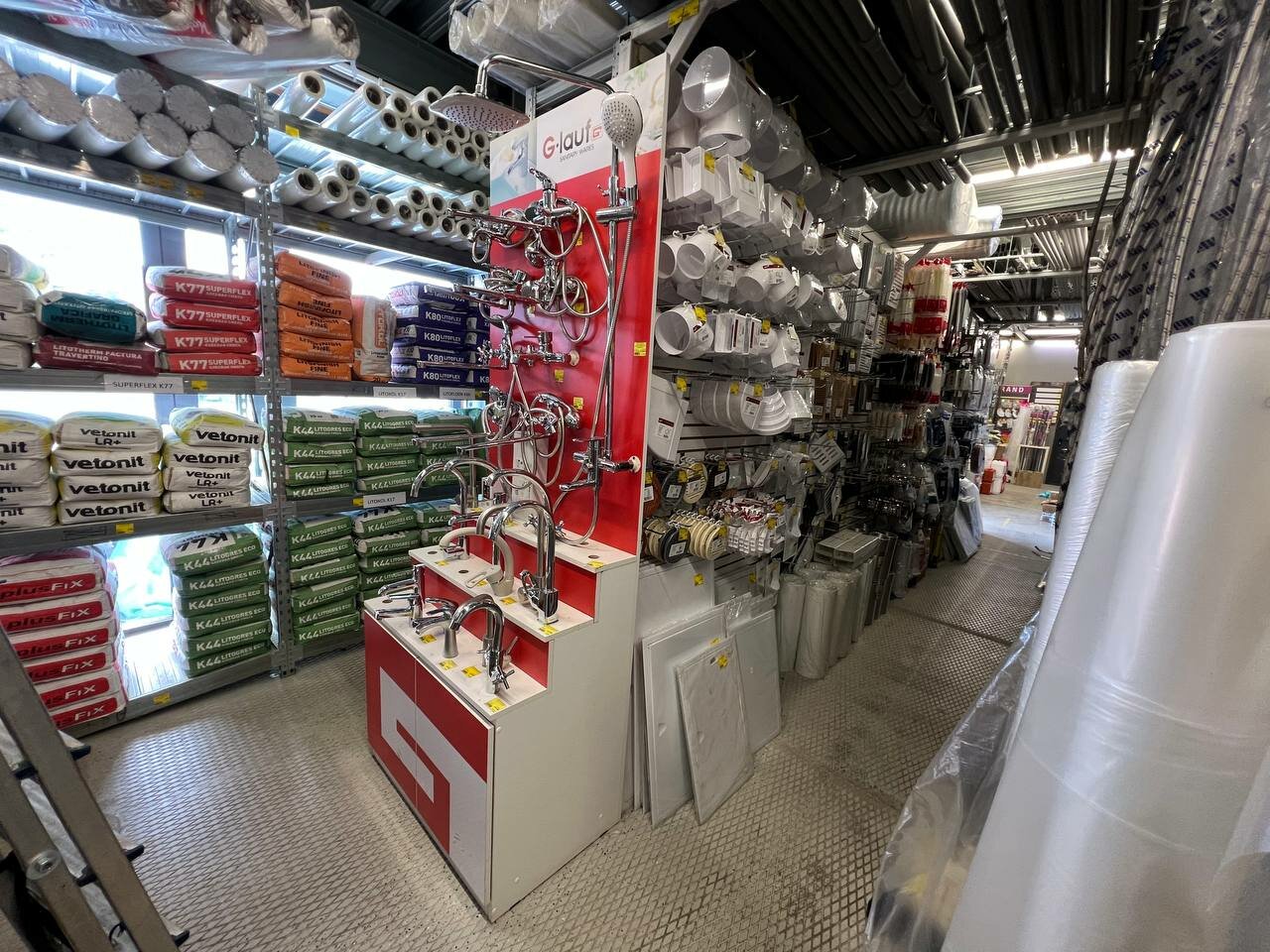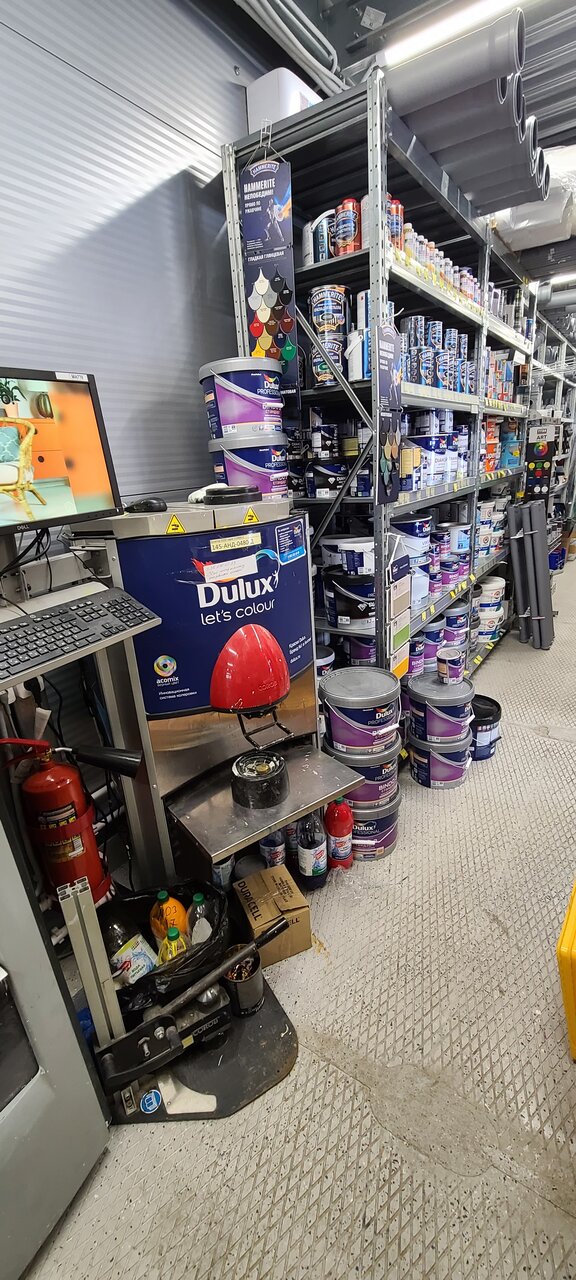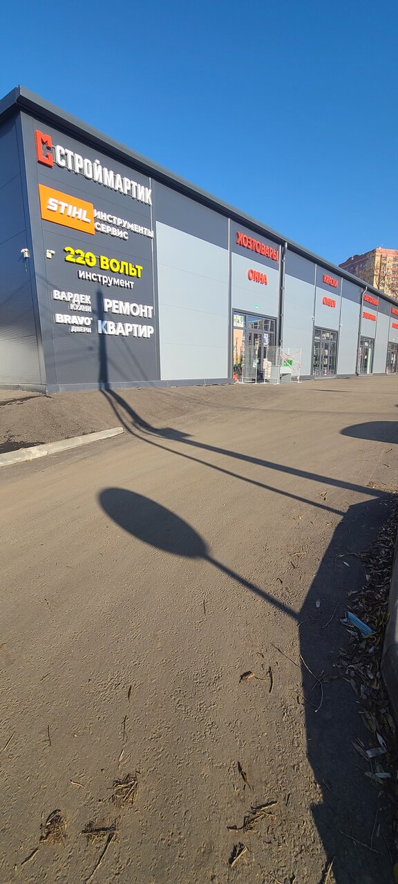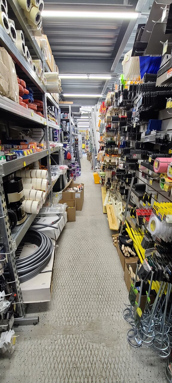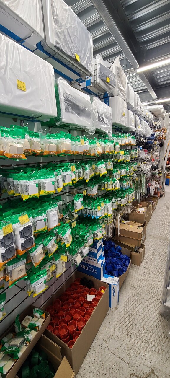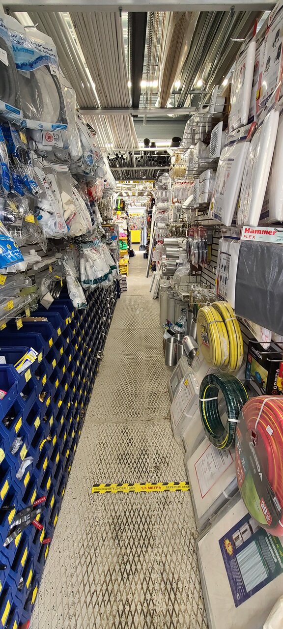 Достаточно большой строительный магазин, можно найти все. От краски до инструментов.