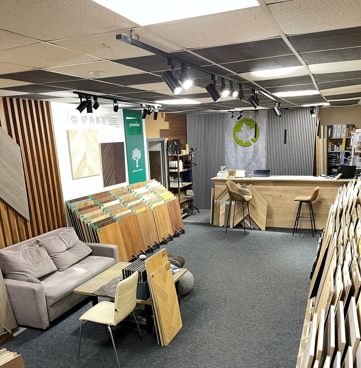 Отличный шоурум, много образцов паркета, доски, декоративной рейки. От метро можно за 10-12 минут дойти. Вход со двора, вывеска скромная — не сразу нашла.