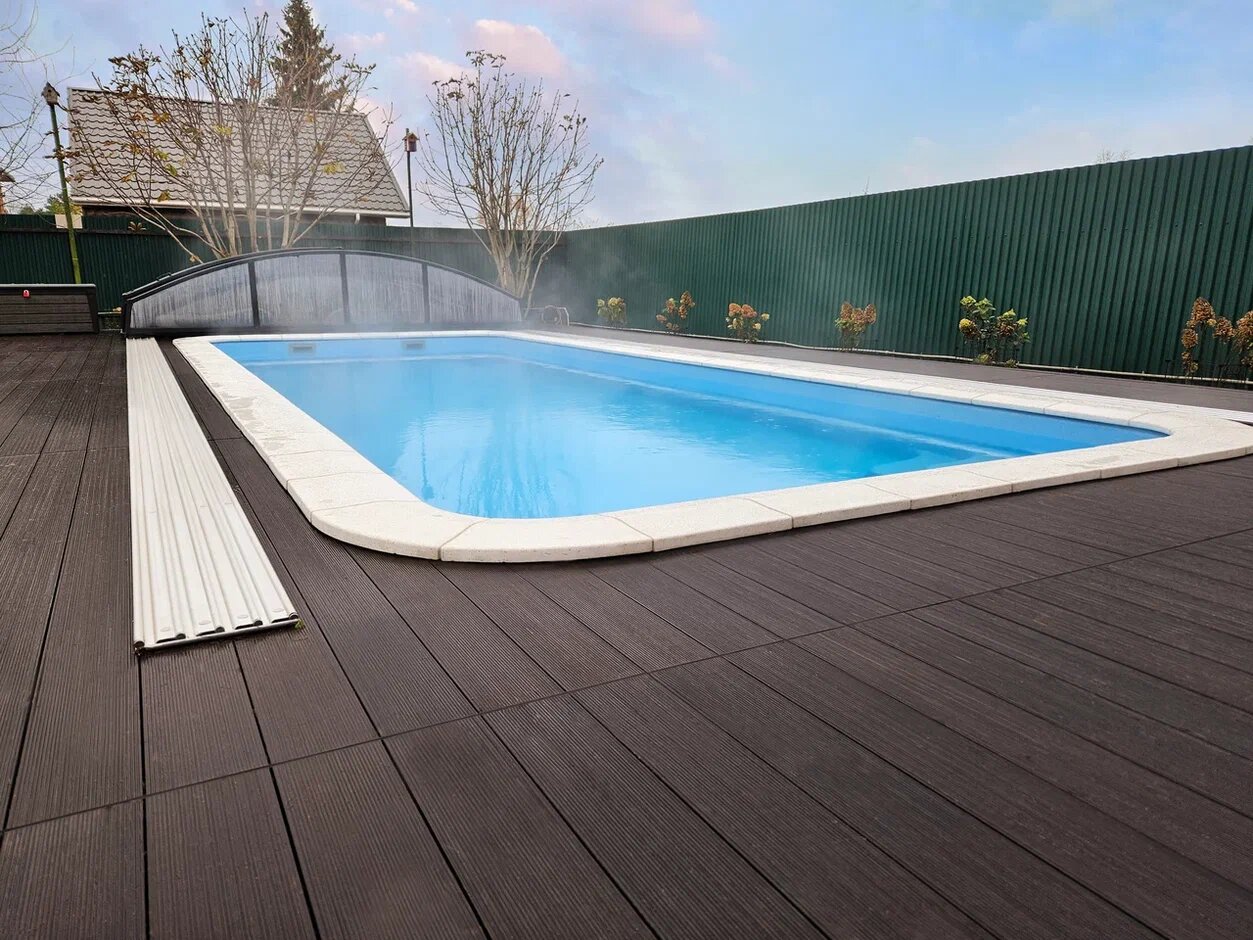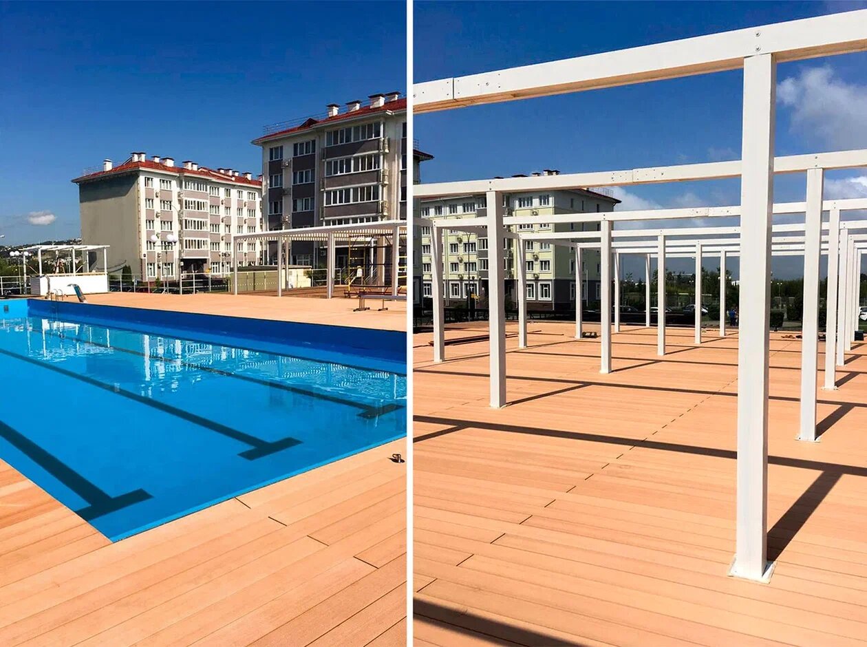 Отличный дэкинг , стелил вокруг бассейна . Порадовало , то что все есть в наличии и за объём скидочка получилась .